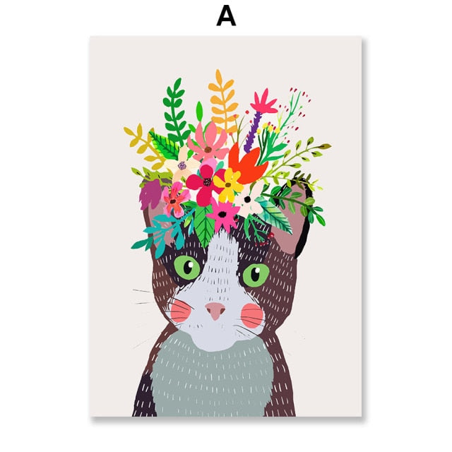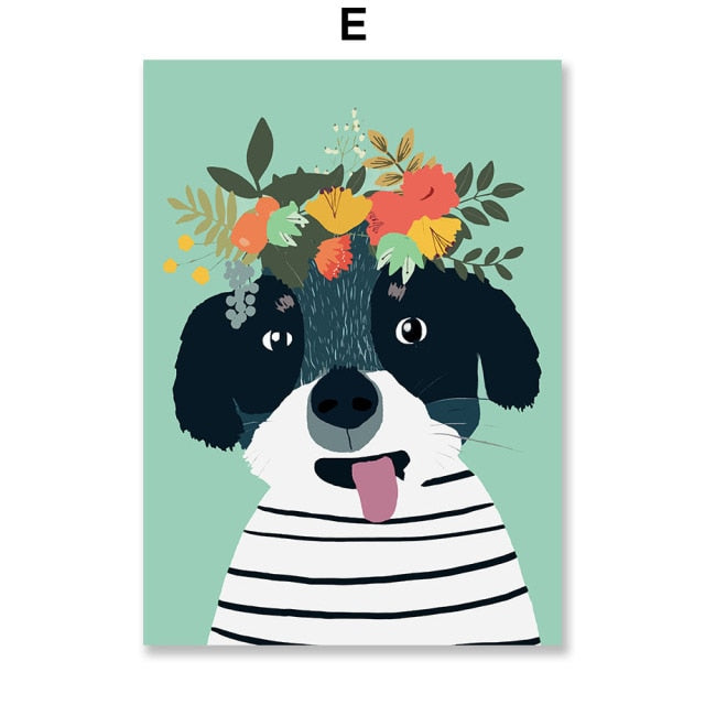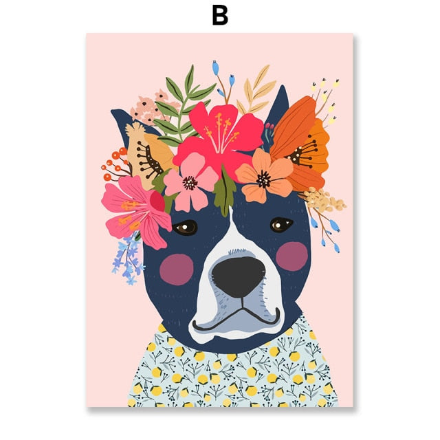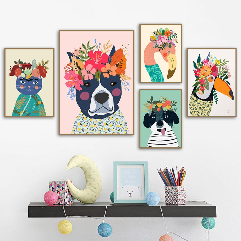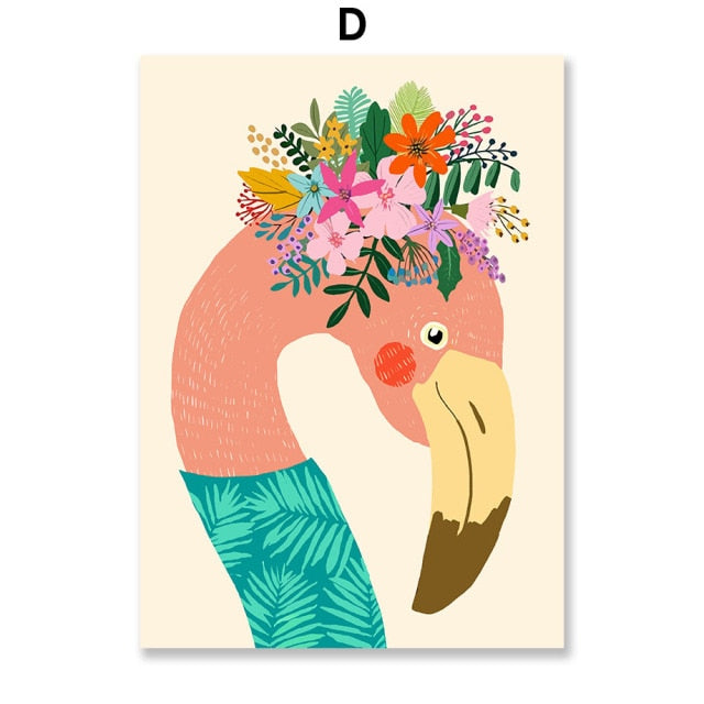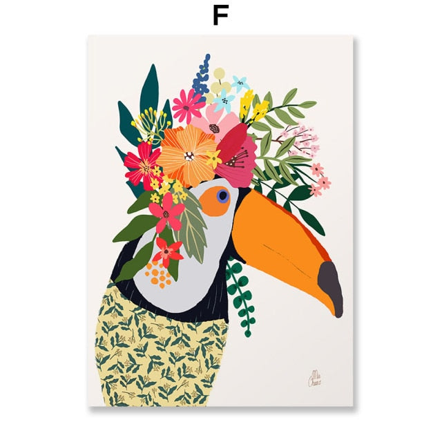 Colorful Flower Pets Flamingo Dog Cat Toucan Nordic Posters And Prints Wall Art Canvas Painting Wall Pictures Kids Room Decor