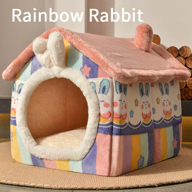 Foldable Dog House Pet Cat Bed Winter Dog Villa Sleep Kennel Removable Nest Warm Enclosed Cave Sofa Pet Supply