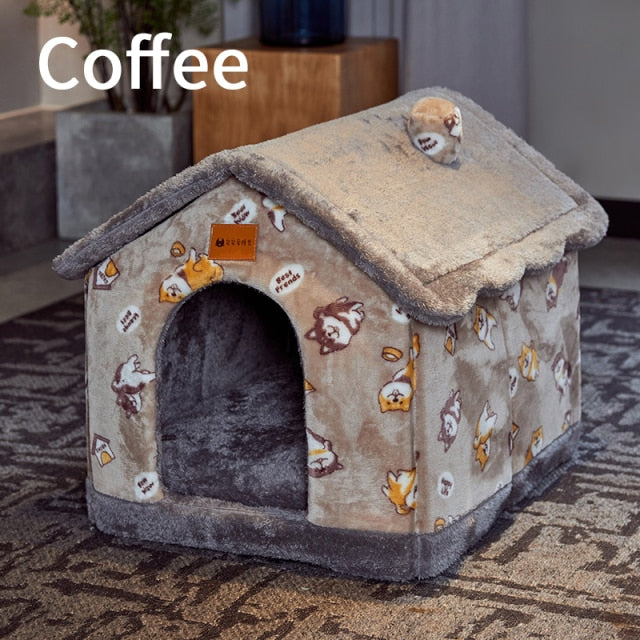 Foldable Dog House Pet Cat Bed Winter Dog Villa Sleep Kennel Removable Nest Warm Enclosed Cave Sofa Pet Supply