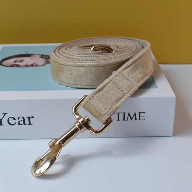 Dog collar leash set is perfect for medium to big sized pets. Made with high-quality polyester blends, this basic collar comes in a solid khaki velvet color with a flannelette 09 design. This personalized collar features a breakaway, jeweled, padded, and quick release feature, making it comfortable and safe for your furry friend. With a bow tie included, this set also comes with a name necklace that can be customized with your pet's name. Available in sizes S, M, L, and XL, this collar leash set is suitable for all seasons and comes with a metal buckle zinc alloy for added durability. Packaged in an OPP bag, this collar leash set is a must-have for pet owners who want to keep their furry friends stylish and safe. Order now and give your pet the gift of comfort, style, and safety!