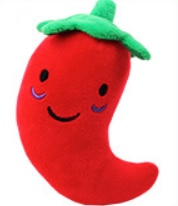 Pet toys made of fleece material that are funny, cartoonish, cute, and fruit-shaped. They are bite-resistant and have a squeaky feature. These toys are suitable for cats and are considered interactive supplies for pets. The set type is not specified. The toys are categorized as squeak toys.
