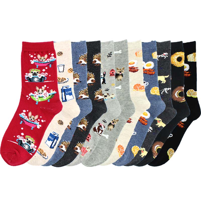 Harajuku Funny Socks Women Creative Hedgehog Dog Breakfast Egg Cute Socks Calcetines Mujer Divertido Lovely Sokken