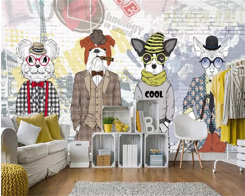 Custom 3d mural Hand Painted abstract animal Cartoon dog clothing store background decorative Self Adhesive wallpaper Waterproof
