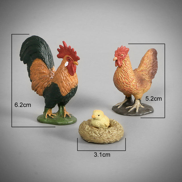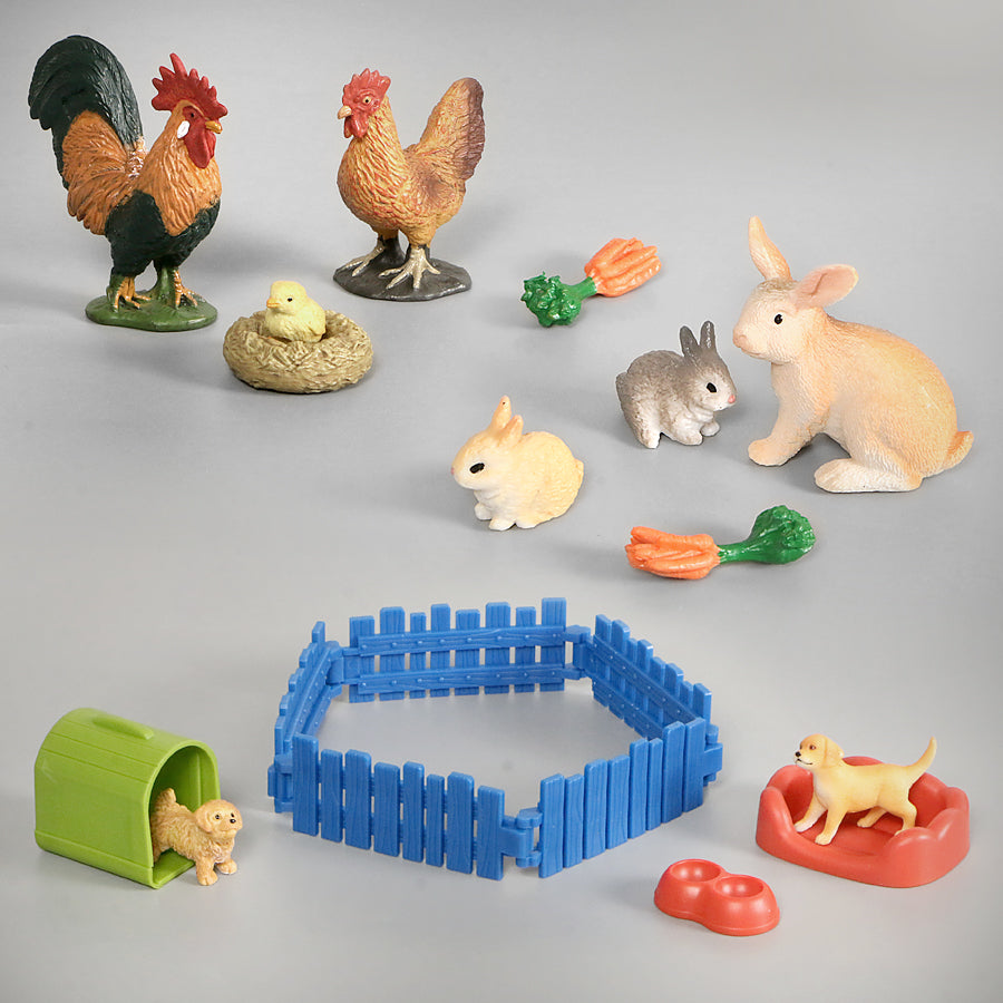 Enhance your child's imagination and creativity with this collection of hand-painted simulation farm animal models. This set includes miniature figurines of hens, rabbits, and dogs, creating a realistic farm scene for your little one to explore.