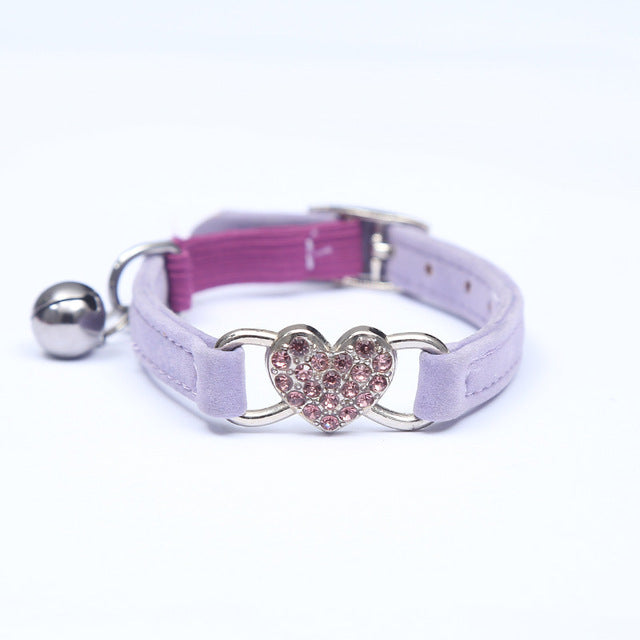 Heart Charm with Bells Dog Collars Safety Elastic Adjustable Soft Velvet Material 8 Colors Product for Small Pet Cat Accessories