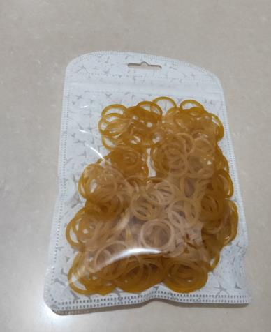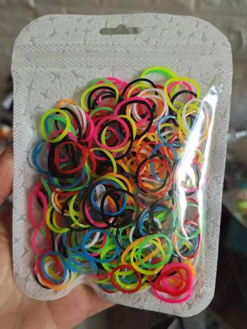 A product for pet hair accessories, specifically for dogs and cats. It is a rubber band with high elasticity, which can be used to make DIY hair bows and grooming hairpins. The package contains about 200 pieces, weighing 20g. The material used is not specified.