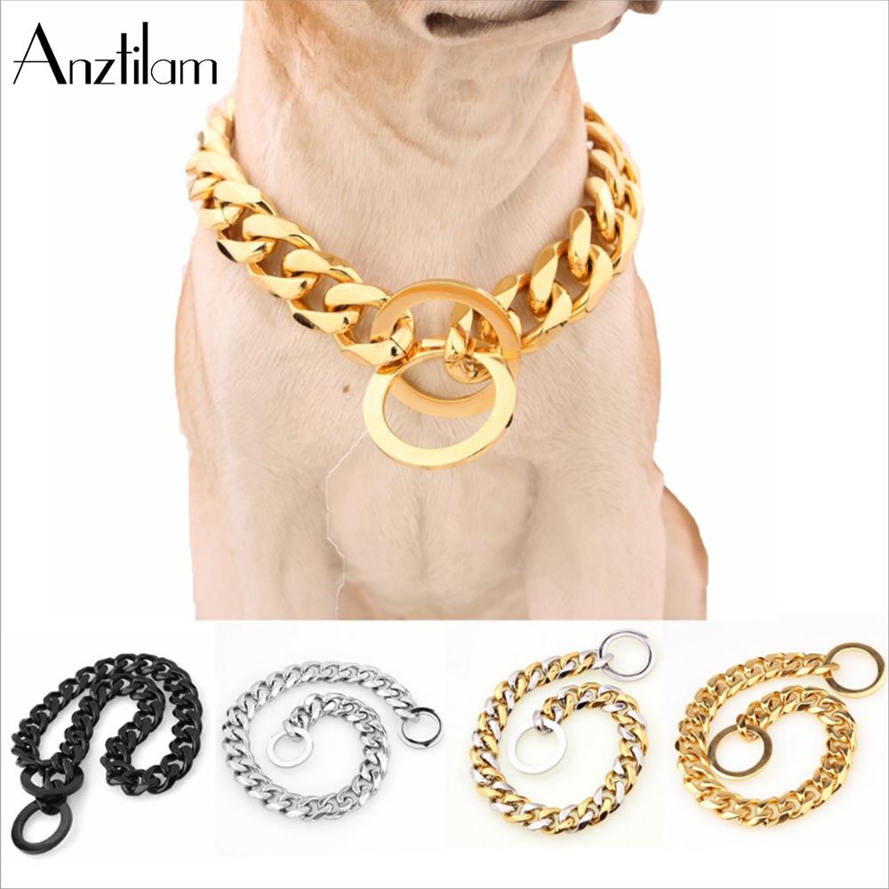 AZ 15mm High-Quality Strong Gold Color Stainless Steel Dog Chain Metal Dogs Training Choker Chain Collars for Large Dogs