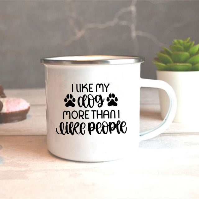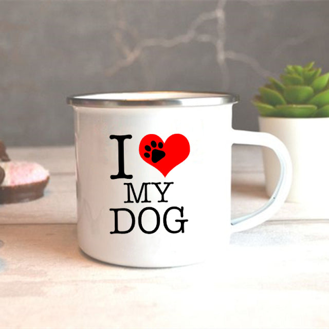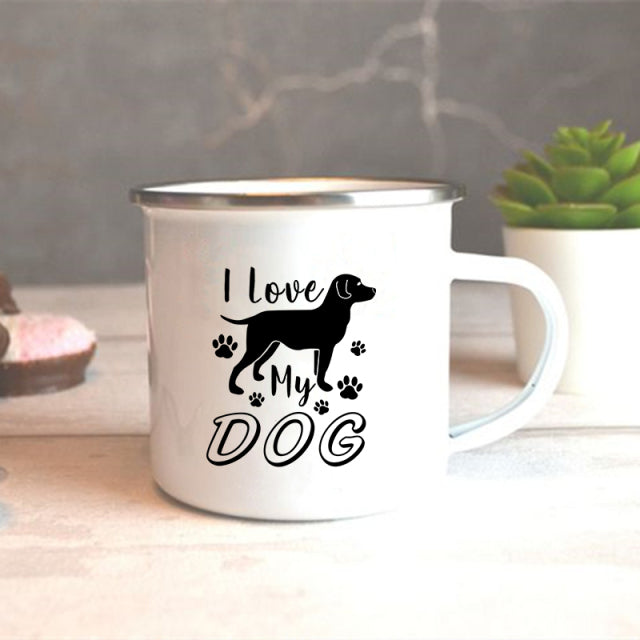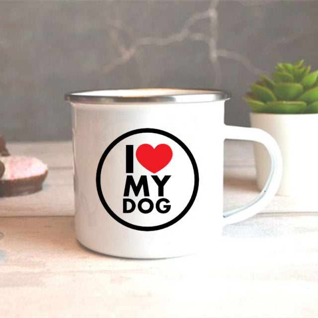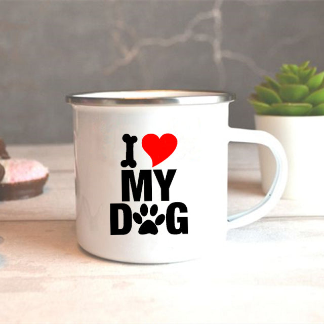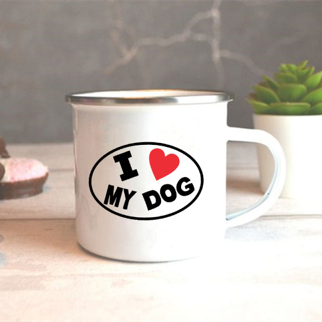 I Love My Dog Printed Enamel Mugs Creative Coffee Tea Cups Drinks Dessert Breakfast Milk Cup Vintage Mug Handle Drinkware Gifts