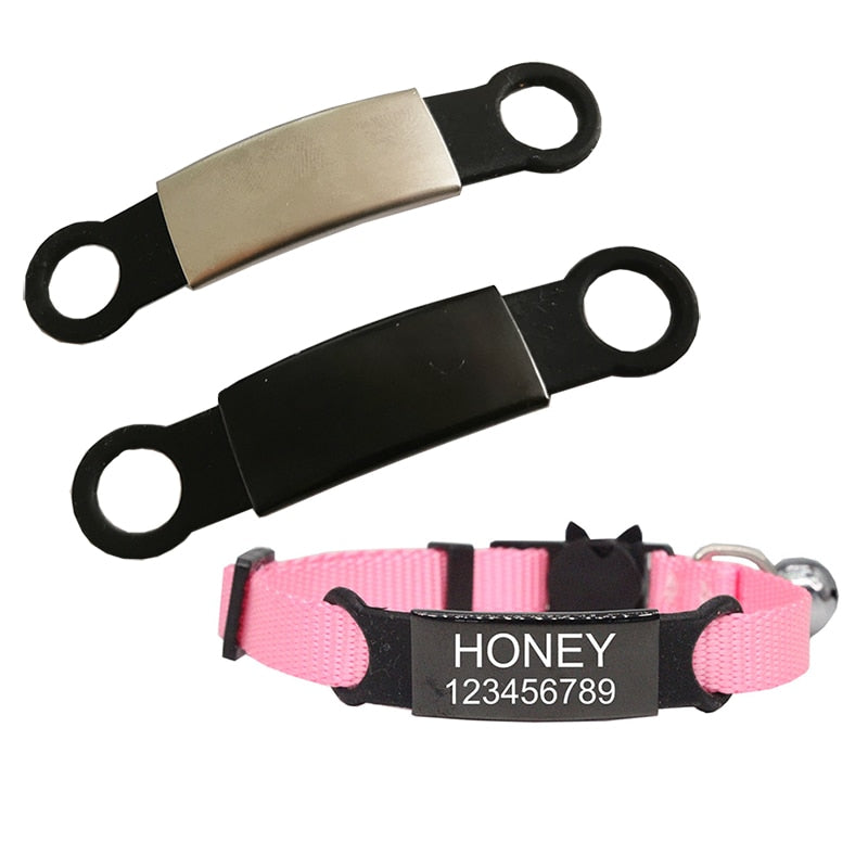 A cat and dog ID tag made of stainless steel with the option for free engraving. It is suitable for all seasons and comes in silver or black. The tag can be personalized with the pet's name and is suitable for small, medium, and large dogs and cats. It is available for retail, wholesale, and dropshipping and is considered a pet accessory.