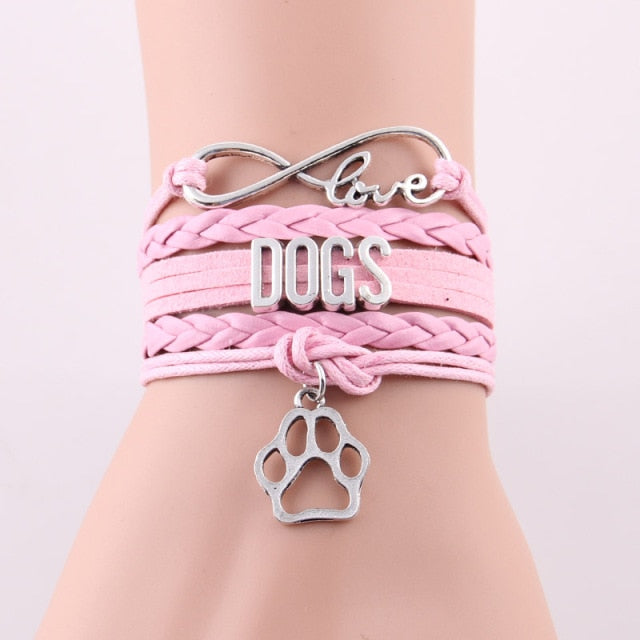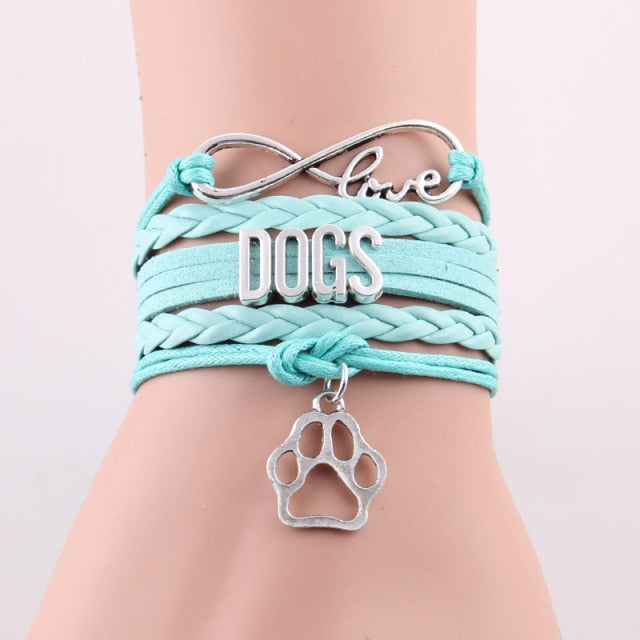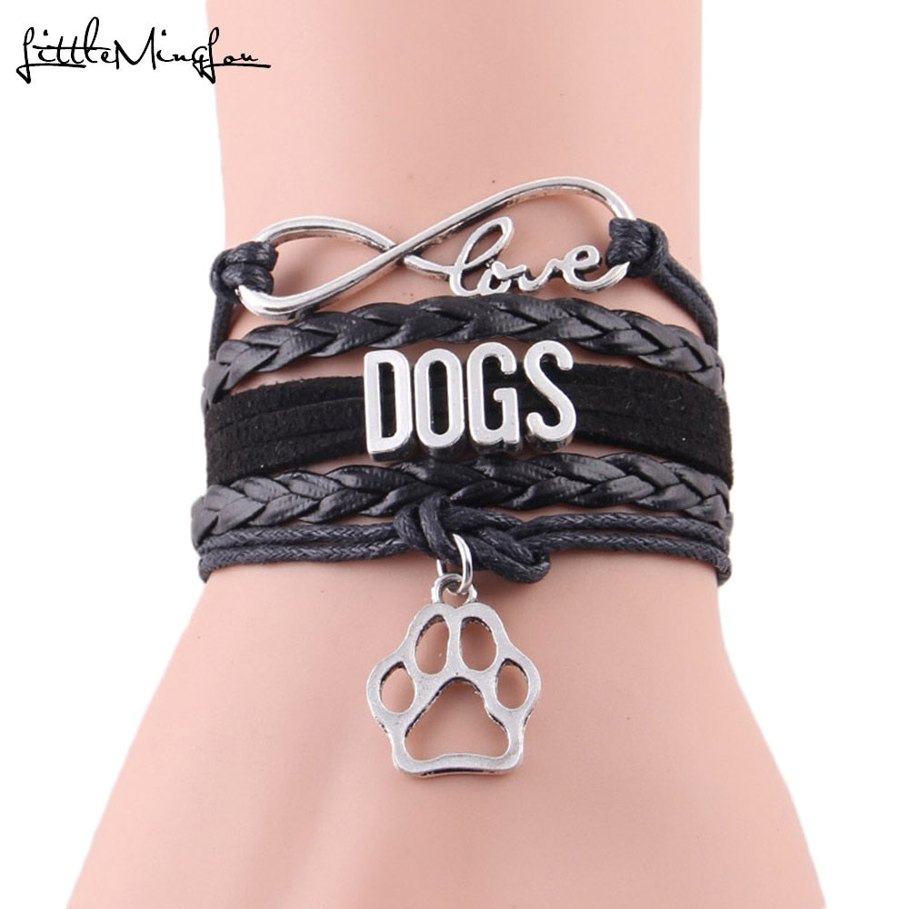 Infinity love DOGS bracelet stacks letters paw charm leather rope handmade wrap women bracelets & bangles for women men jewelry