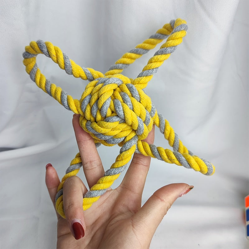 Are you looking for a durable and interactive toy for your furry friend? Look no further than our Four Ears Ball! This innovative dog toy is made of bite-resistant cotton rope, ensuring that it can withstand even the toughest chewers.