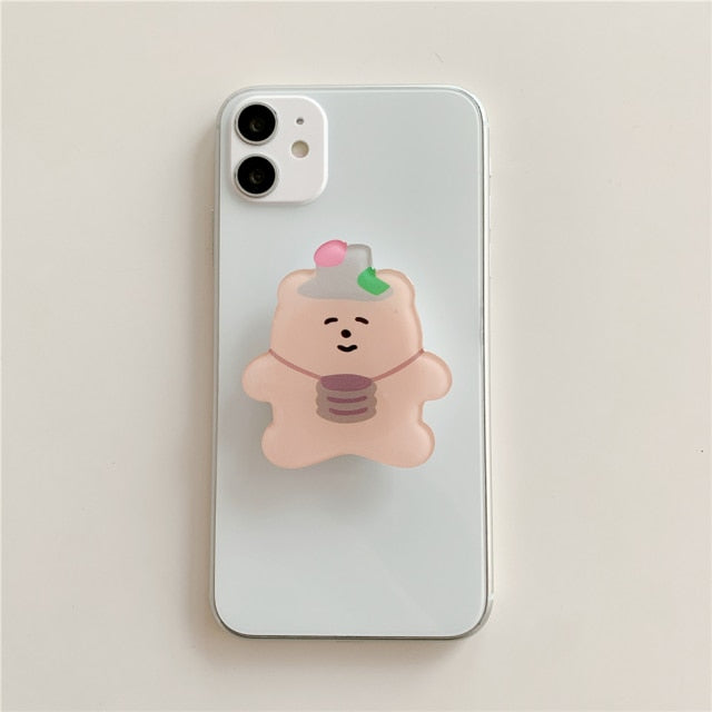 Popular Cute 3D Korean Cartoon Bear Dog Universal Phone Grip Foldable Holder Expanding Stand Finger Ring Holder Lovely Gril Funy