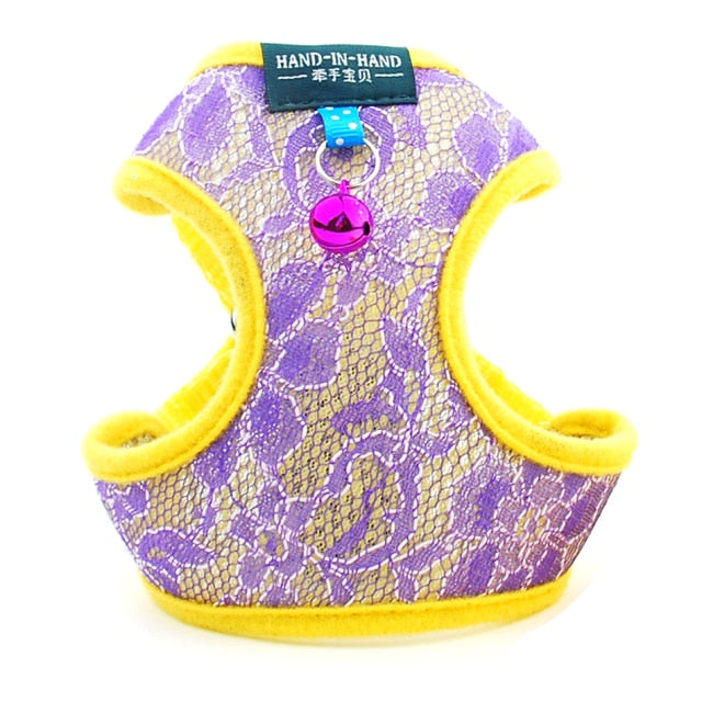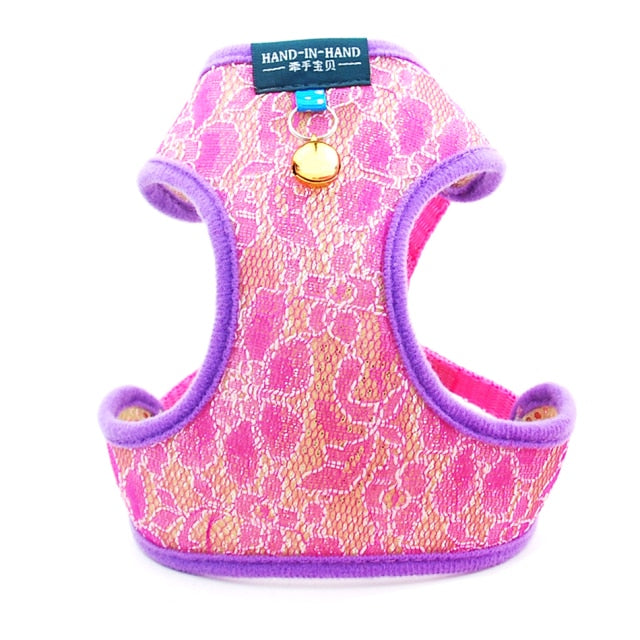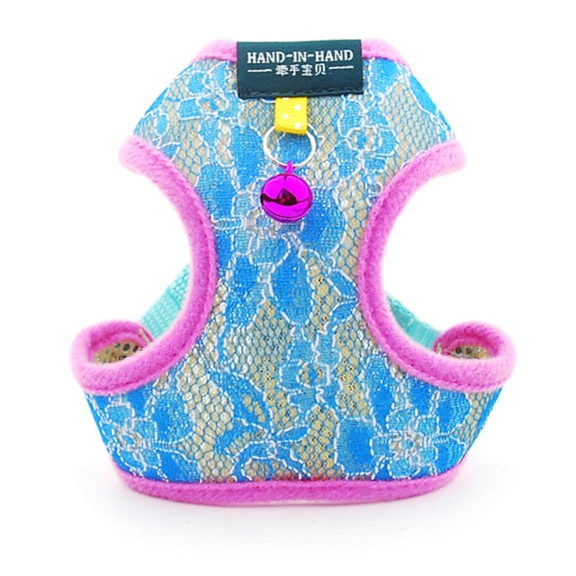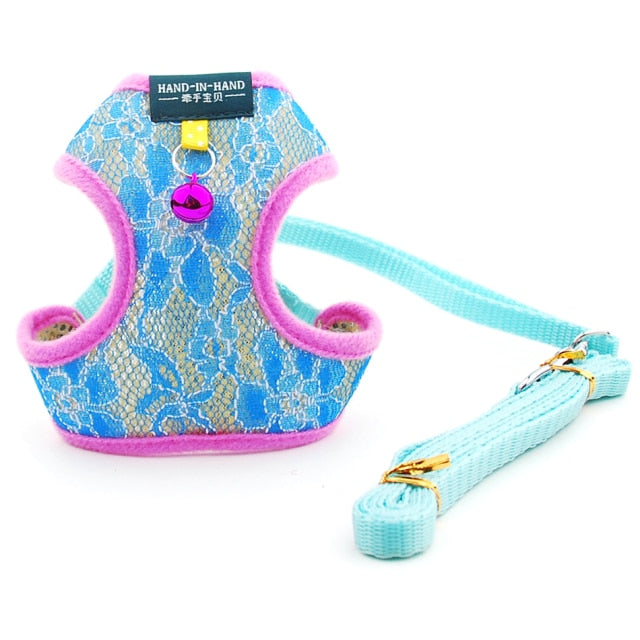 Dog Cat Lace Harness Vest Pet Products Adjustable with Bell Walking Lead Leash Puppy Polyester Mesh Harness for Small Medium Dog
