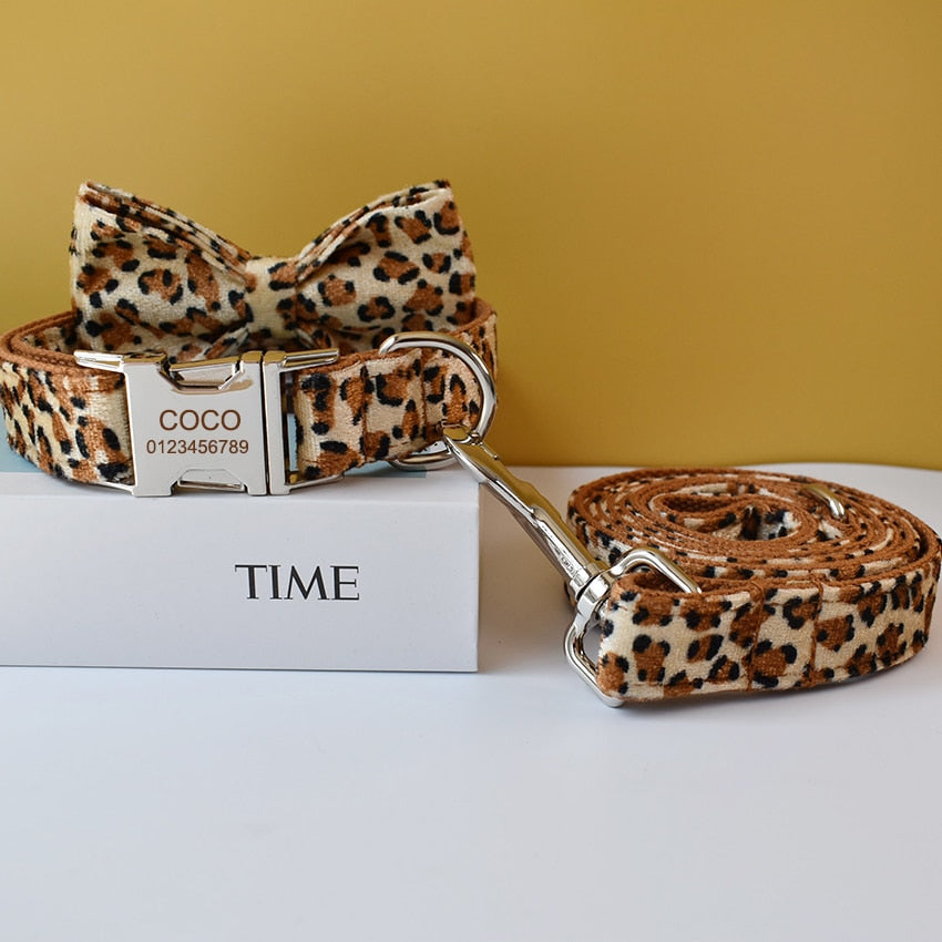 Leopard Print Bow Tie Dog Collar For Small Medium Large Dogs Custom Collars Engraved Nameplate Pet Supplies Necklace Animal 01