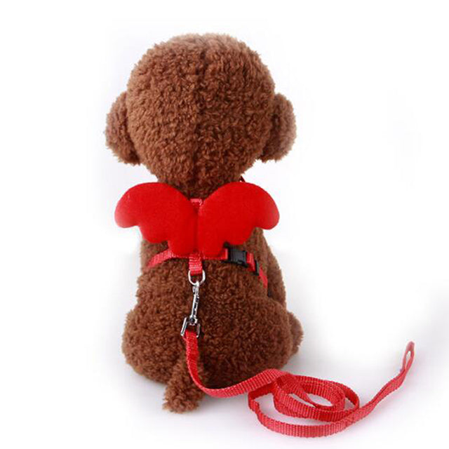 A set of pet leashes with chest straps and angel wings for small dogs, made of polyester blends and suitable for all seasons. It includes personalized features such as a breakaway function and quick release.