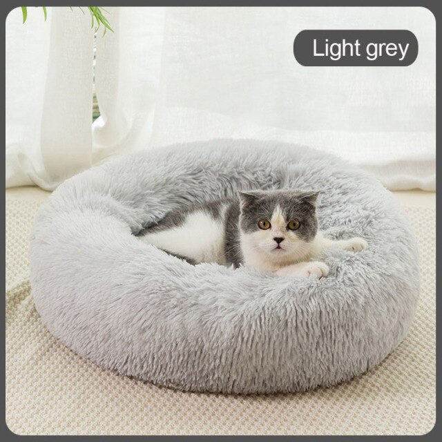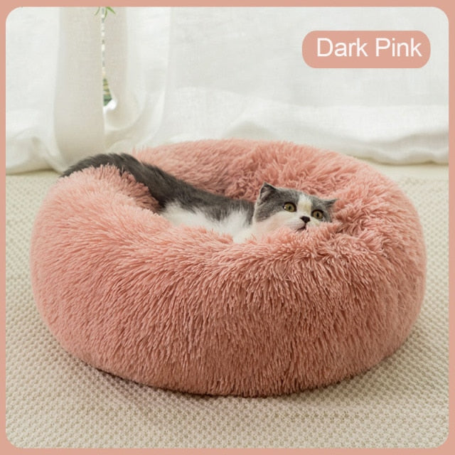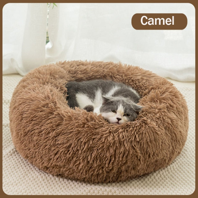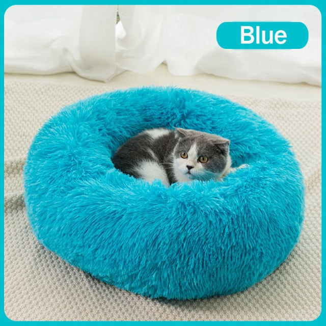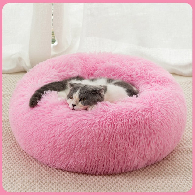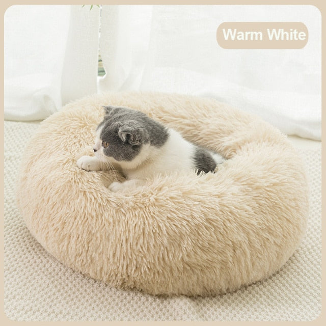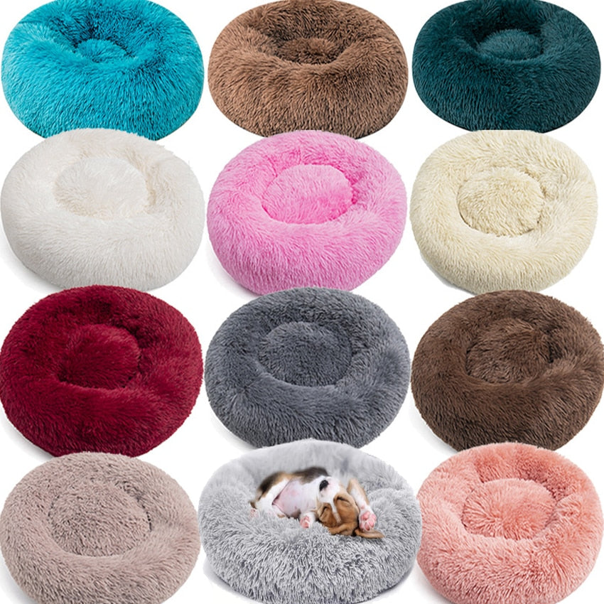 Long Plush Fluffy Pet Dog Bed Claming Dog Beds Donut Round Cat Dog Bench Soft Warm Chihuahua Kennel Large Mat Pet Supplies