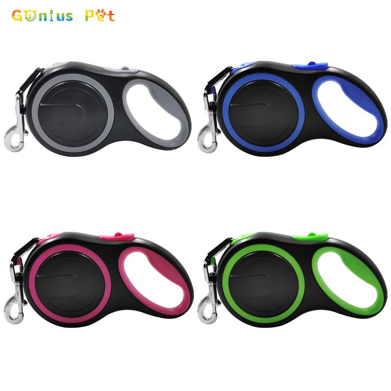 A strong and durable retractable leash made of nylon for large dogs. It can be used in all seasons and has a solid pattern. It is not a smart device and does not have any personalized features.