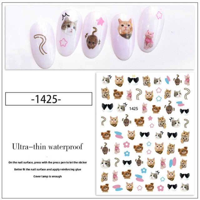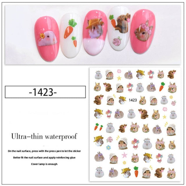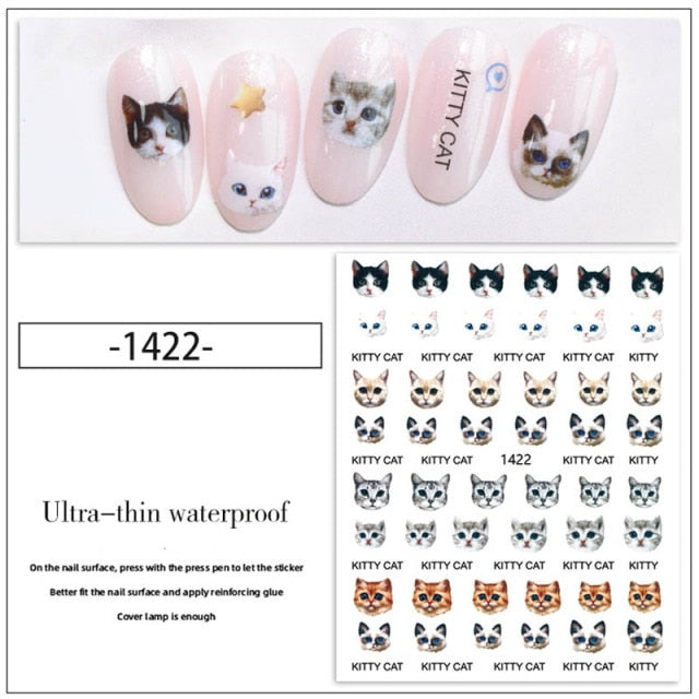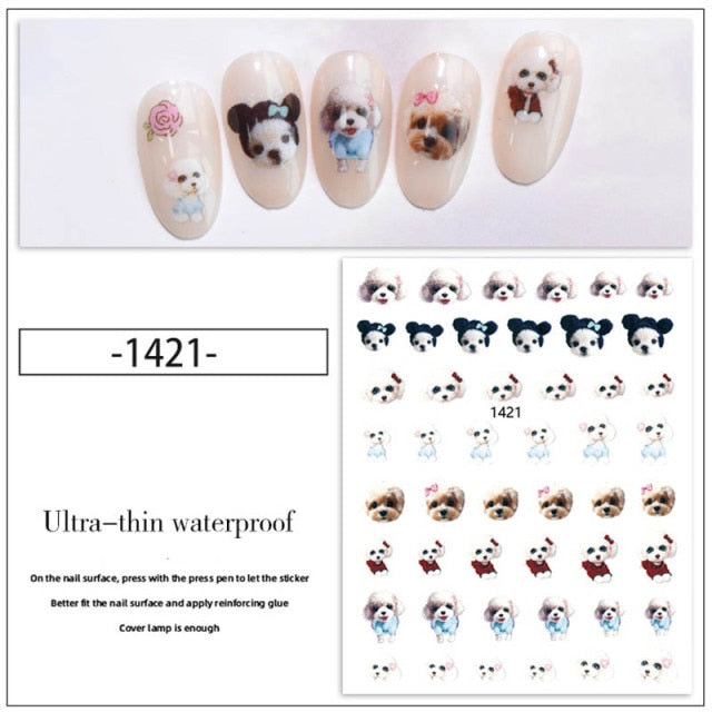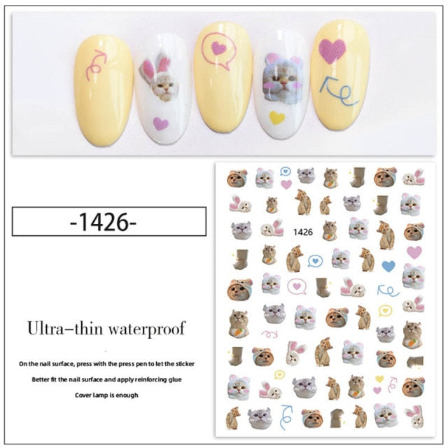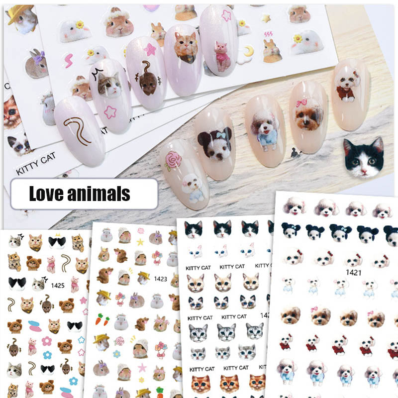 Lovely animals sticker for nail art decoration self glue cat rabbit dog design manicure accessories ultra thin nail foil YJ062