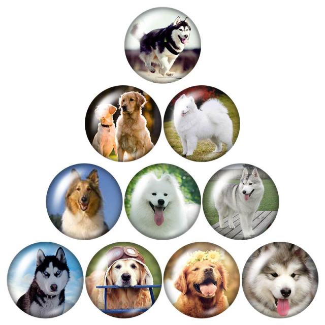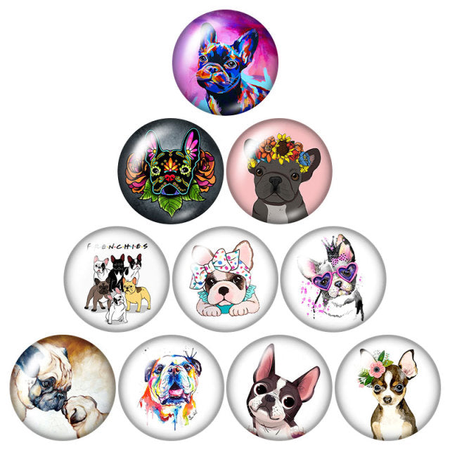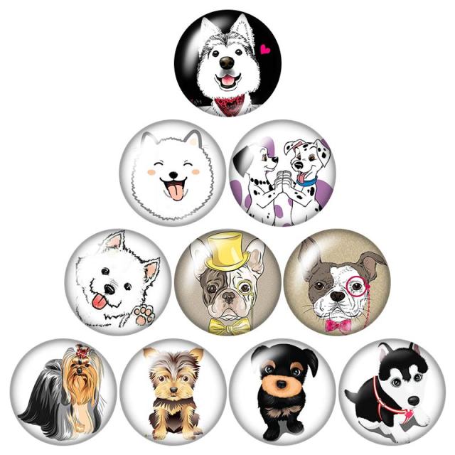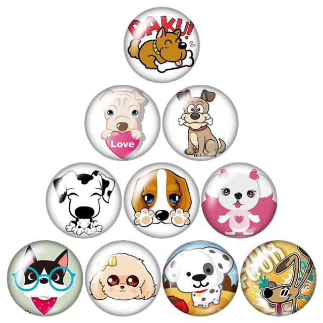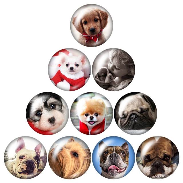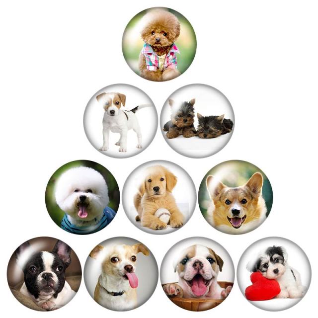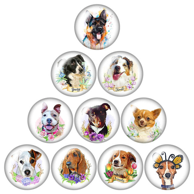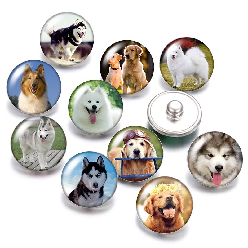 Lovely Dog Love pet 18mm snap buttons are perfect for creating unique and personalized charm bracelets. This set includes 10 pieces of mixed round photo glass cabochon style snap buttons, each featuring adorable images of dogs.
