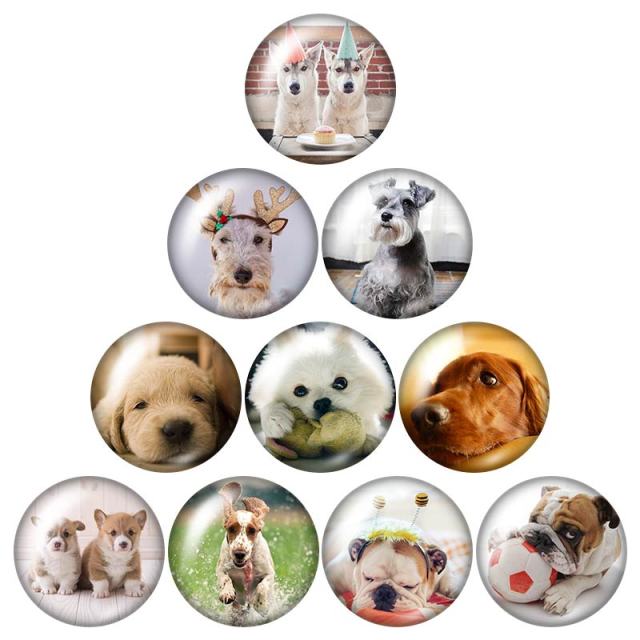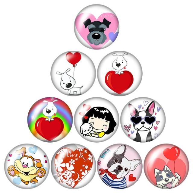 Lovely Dog Love pet 18mm snap buttons 10 pieces mixed round photo glass cabochon style for snap button jewelry
