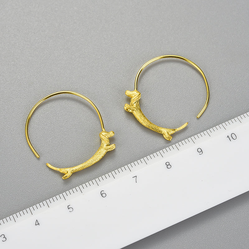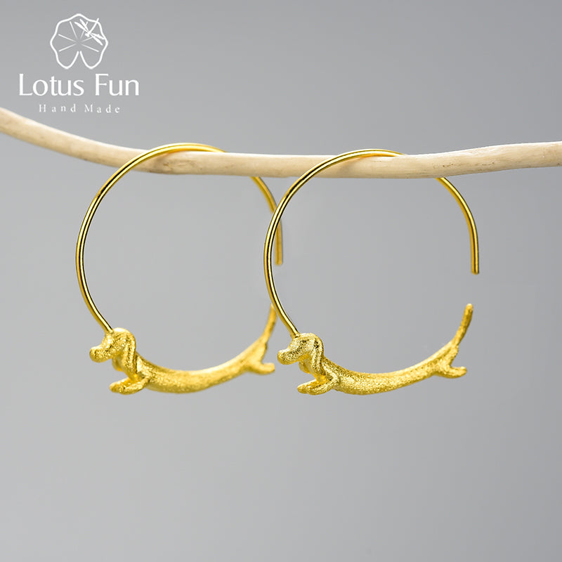 Lotus Fun Lovely Flying Dachshund Dog Big Round Hoop Earrings Real 925 Sterling Silver 18K Gold Earrings for Women Jewelry