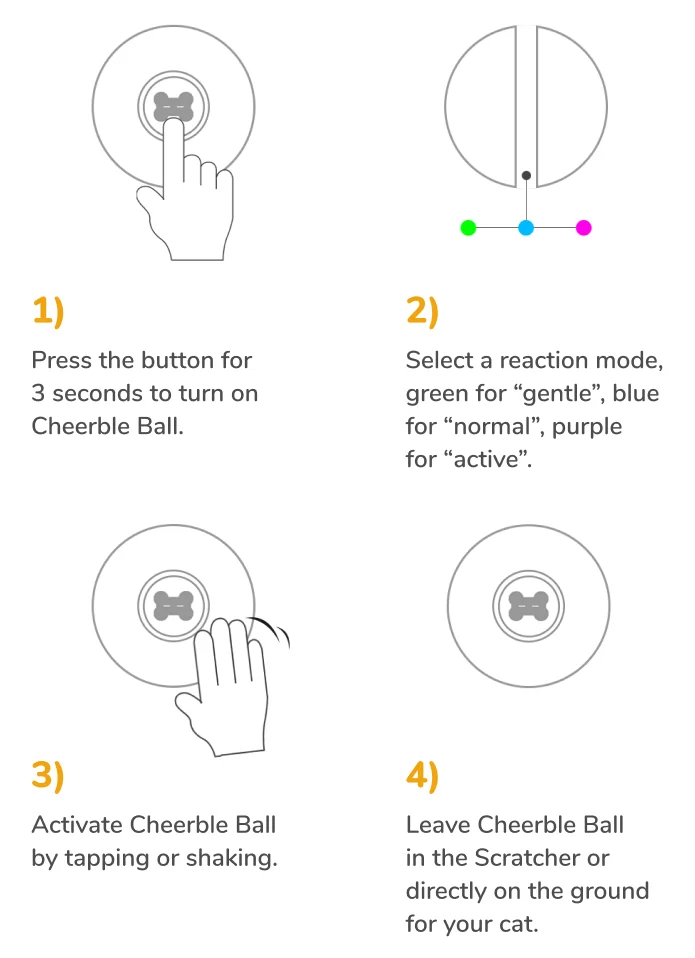 Automatic Interactive Ball Toy for Pet: When Cheerble Ball is turned on, it will react once your cat touches it with its nose or paws. With sparkling light, low sound and rolling and jumping by itself like a mouse, the intelligent ball will attract cats to chase and capture it. The ball will be your cat’s favorite indoor toy.