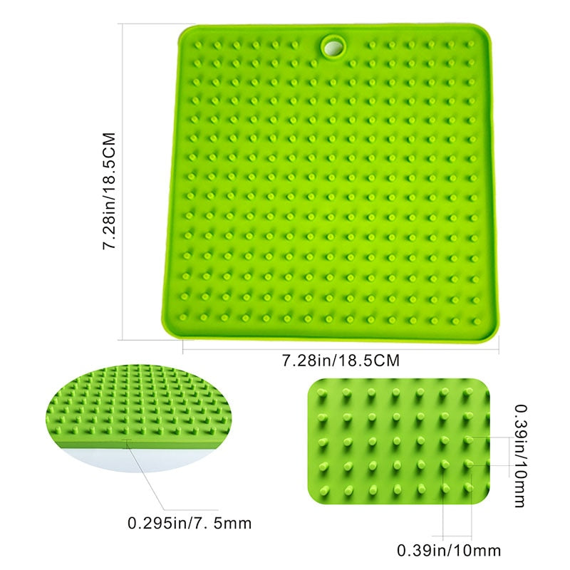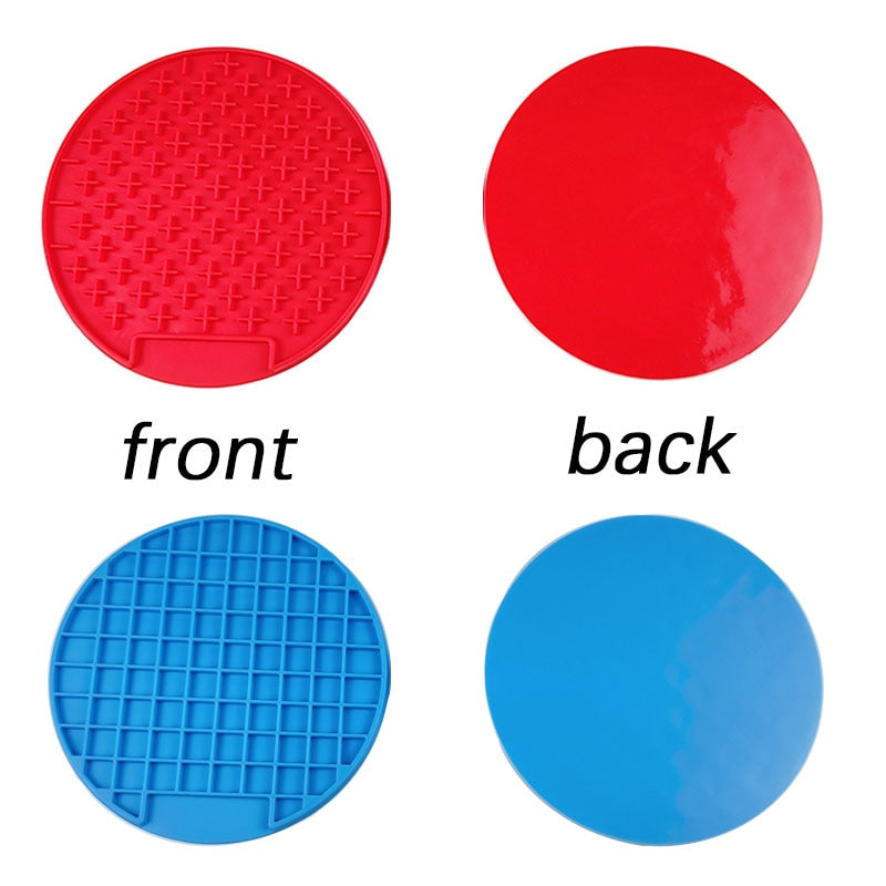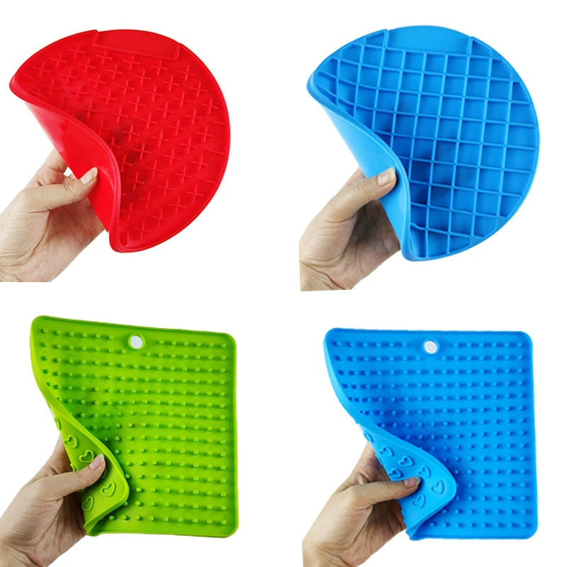 Introducing our innovative silicone licking mat, designed to provide a slow feeding experience for dogs and puppies. This versatile mat comes in various shapes and vibrant colors to cater to your pet's preferences. With its unique features, it serves multiple purposes, including distraction during dog washing and treat dispensing.