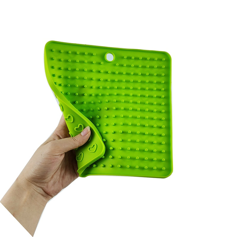 One of the standout features of our licking mat is its ability to provide distraction during dog washing. Simply spread your pet's favorite treat or peanut butter on the mat, and they will be occupied with licking it off, making bath time a breeze. This helps reduce anxiety and stress for your furry friend.