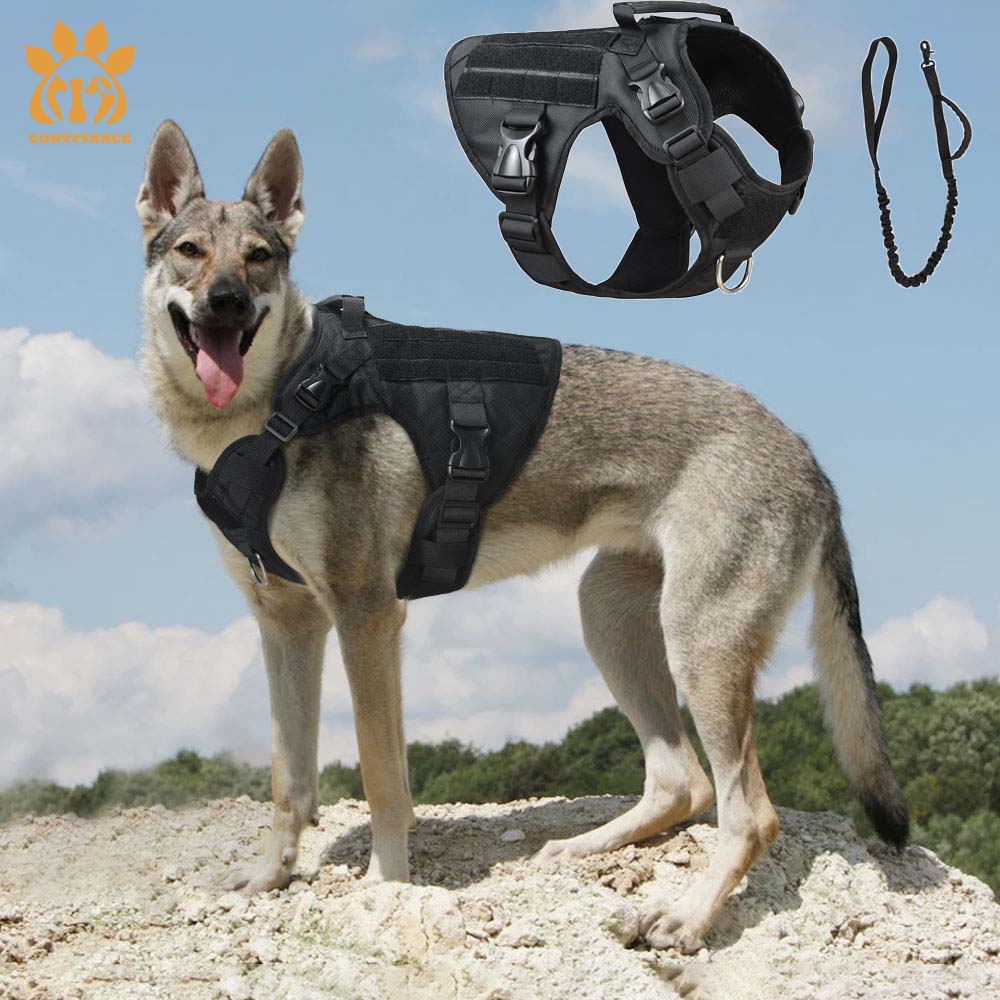 No Pull Military Tactical Dog Harness and Leash For Medium Large Dog Durable Nylon Tactical Service Dog MOLLE Vest For Training