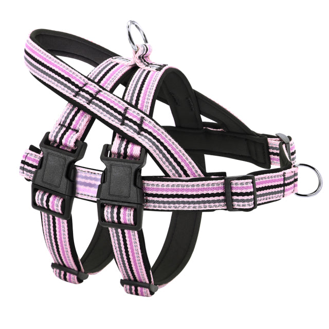 Introducing our No Pull Reflective Nylon Dog Harness, the perfect accessory for medium to large dogs such as Pitbulls and Bulldogs. This adjustable harness is designed to provide maximum comfort and control during walking and training sessions.