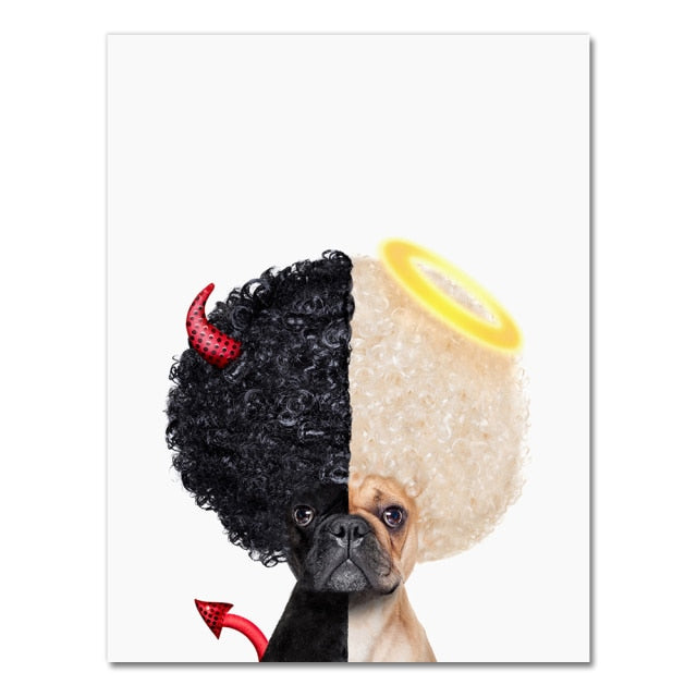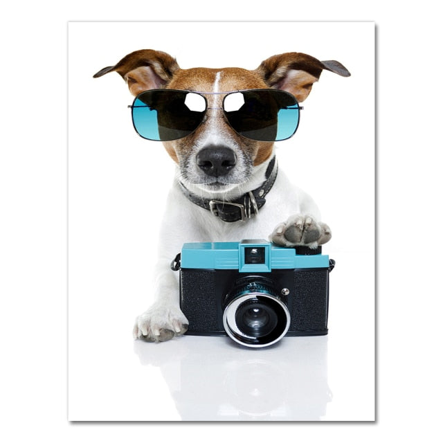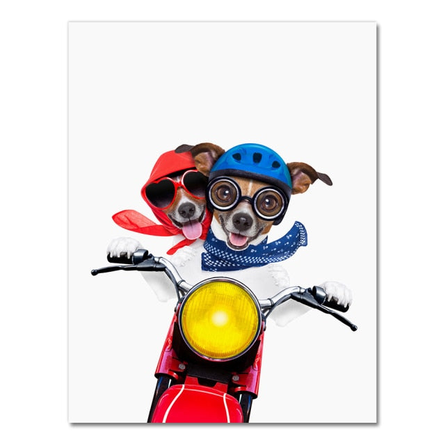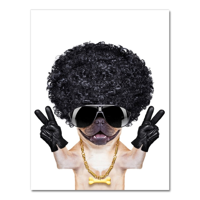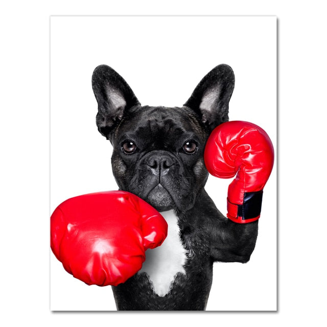 A print of a boxing dog in a Nordic style, with a funny cartoon animal design. The print is waterproof and spray-painted on canvas, and does not come with a frame. It is suitable for decorating a kid's room and is a classical style of art. The model number is FB1033 and the canvas is customizable.