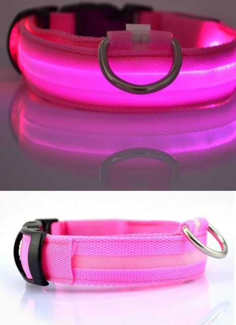 Nylon LED Pet Dog Collar,Night Safety Flashing Glow In The Dark Dog Leash,Dogs Luminous Fluorescent Collars Pet Supplies