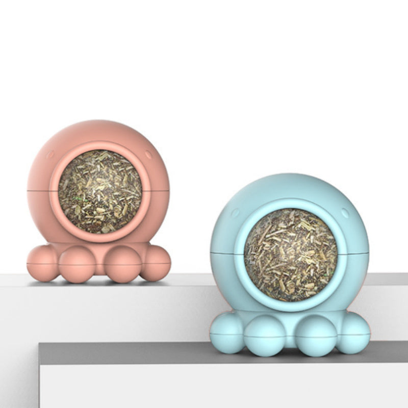 The Octopus Catnip Toy Ball comes in two vibrant colors – blue and pink, with each option featuring a sticky bottom that easily adheres to walls or floors for added stability during playtime. The compact size of 46mm×46mm×50mm makes it perfect for pets of all sizes, whether they prefer to bat it around on the floor or swat it while it rotates on the wall.