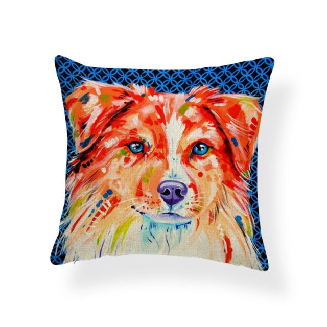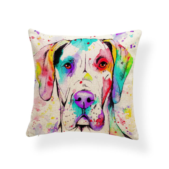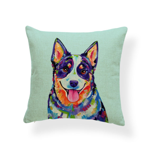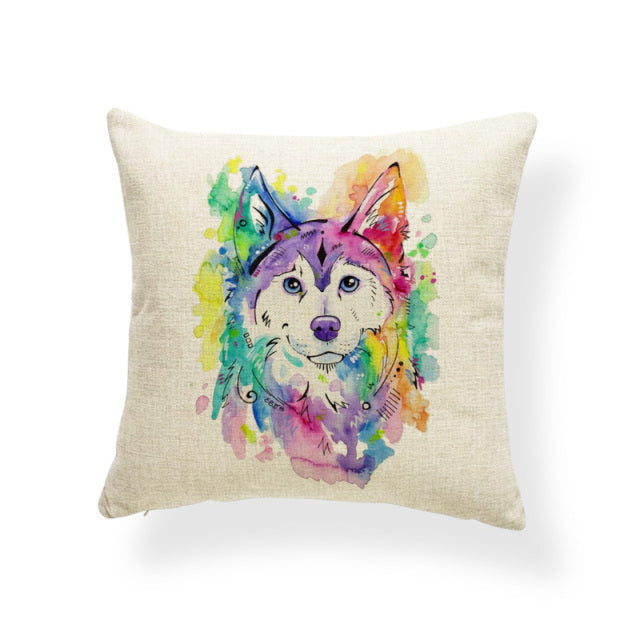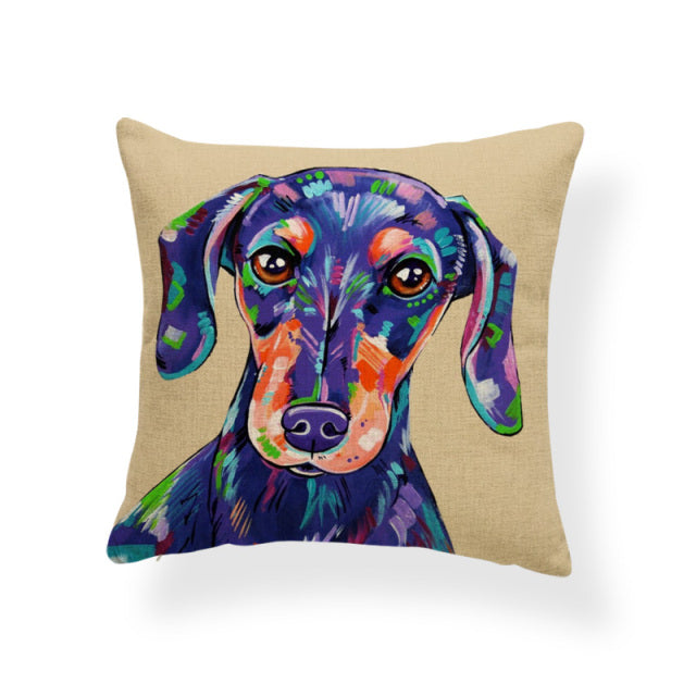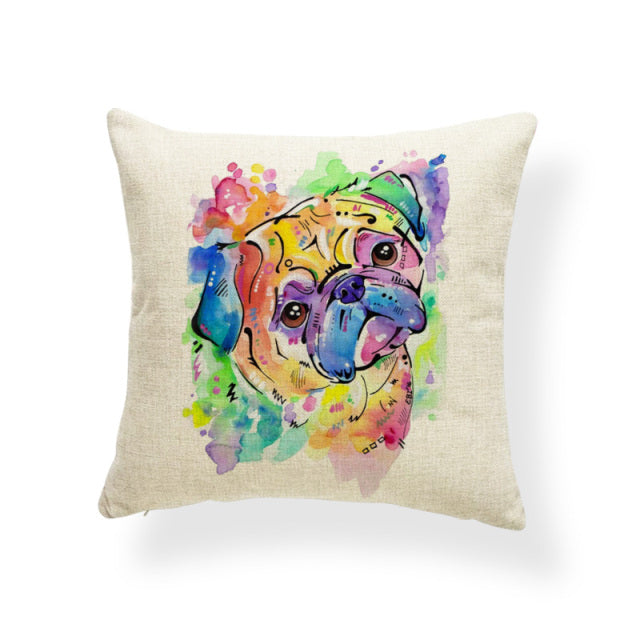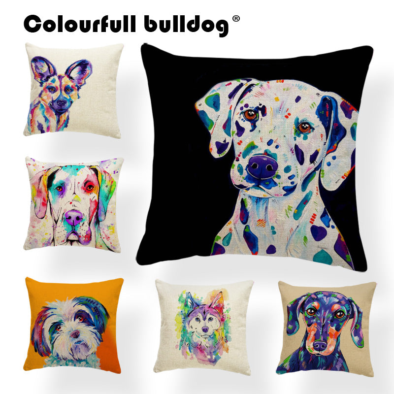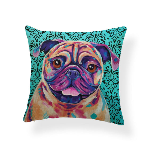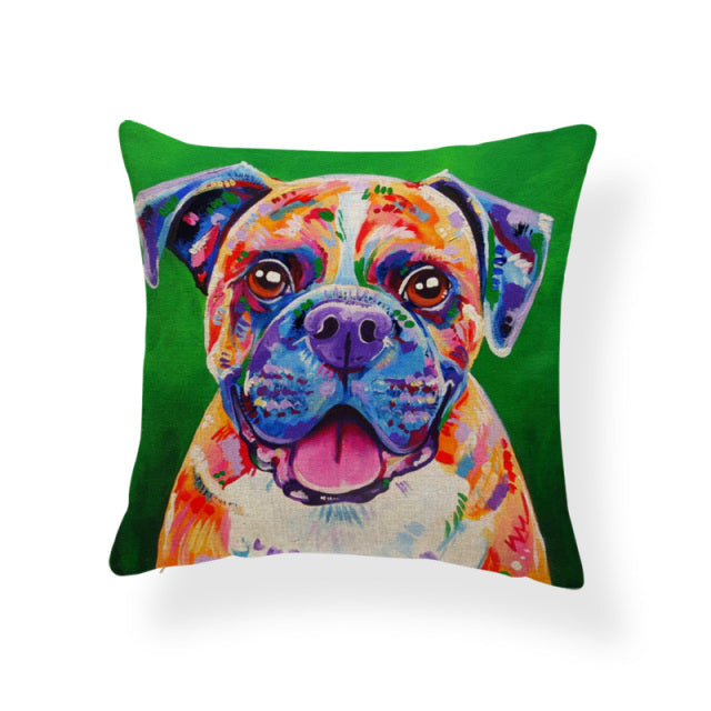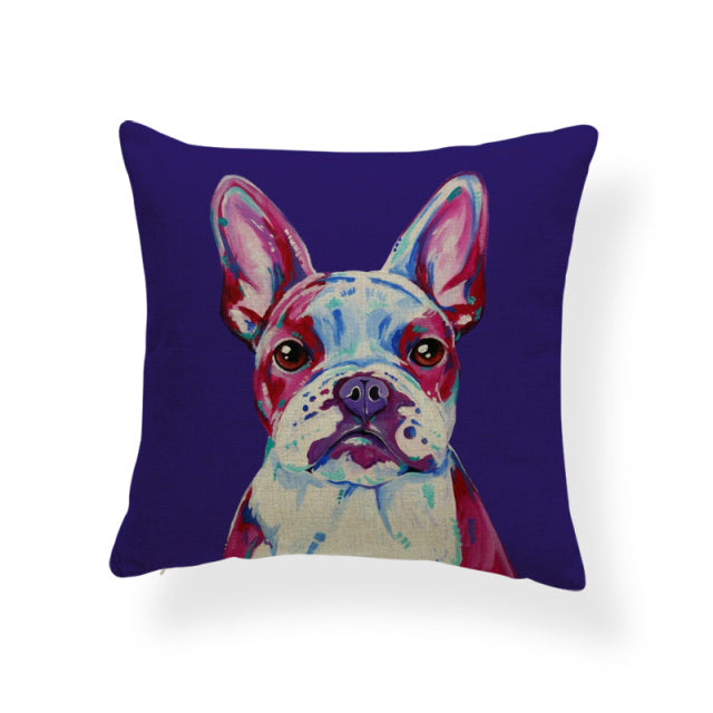 Cartoon Cute Oil Painting Animal Throw Pillow Cases French Bulldog Pug Siberian Husky Cushion Covers Boxer Dog Home Sofa Decor