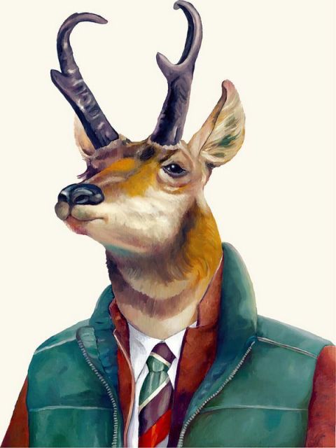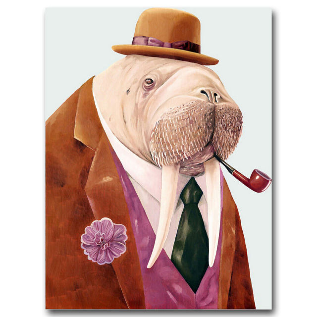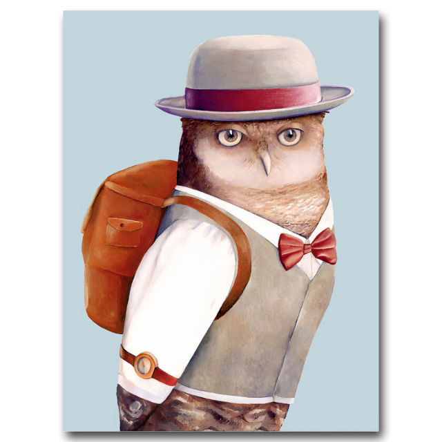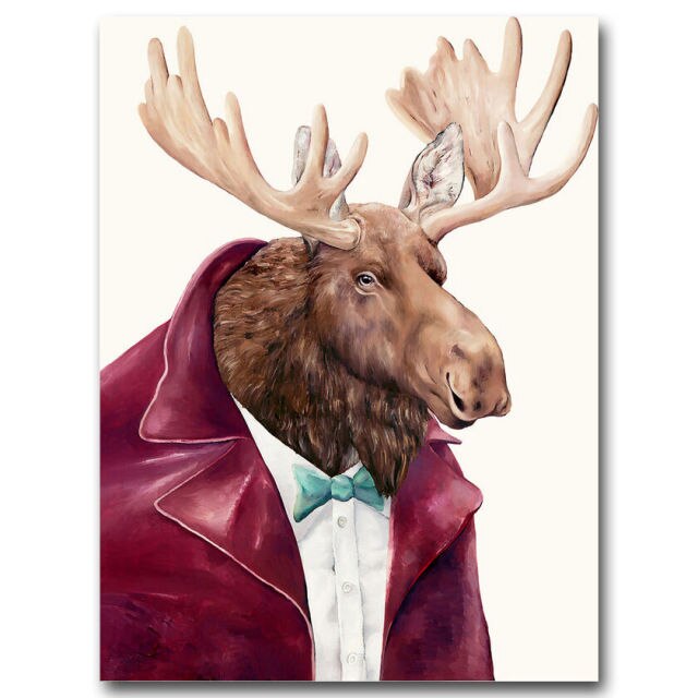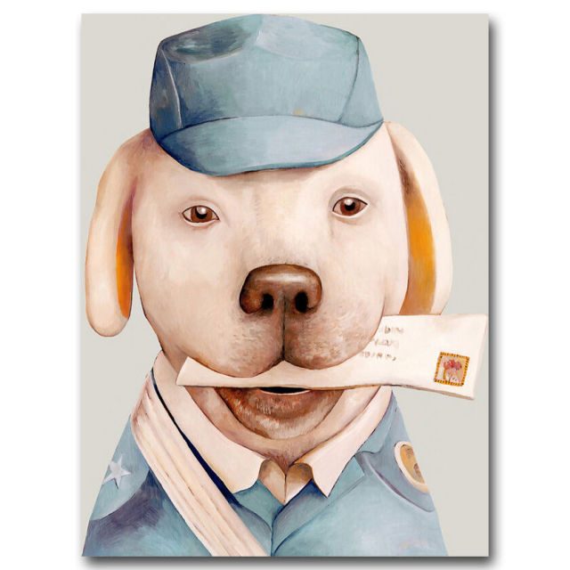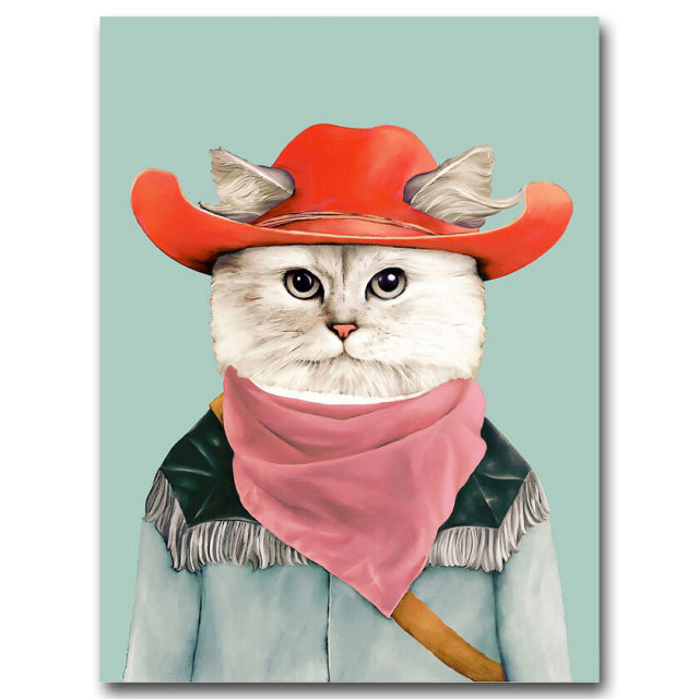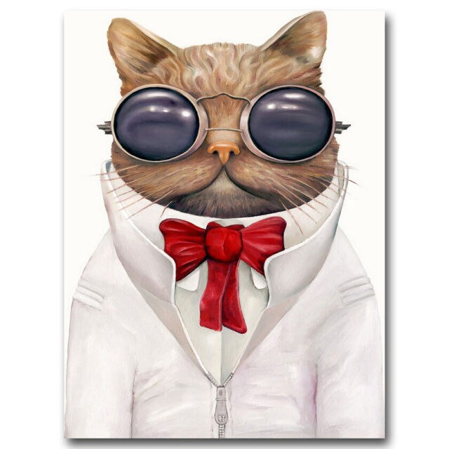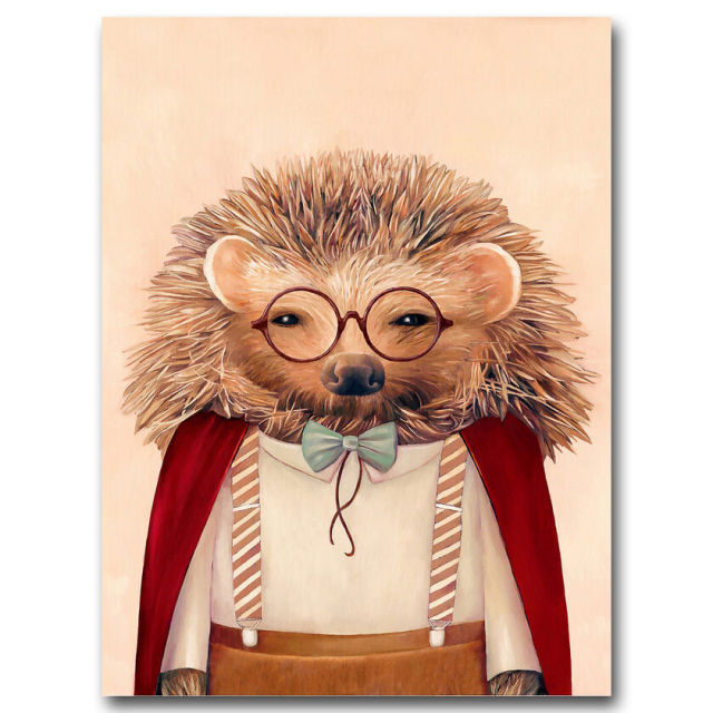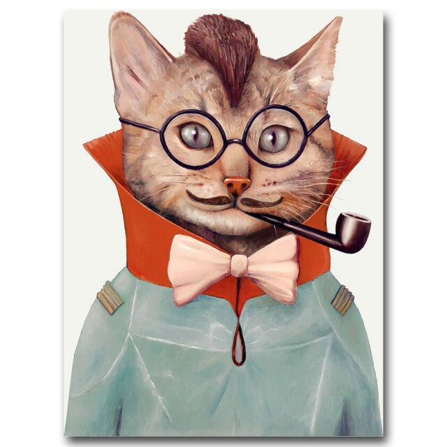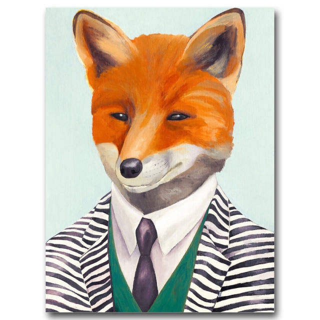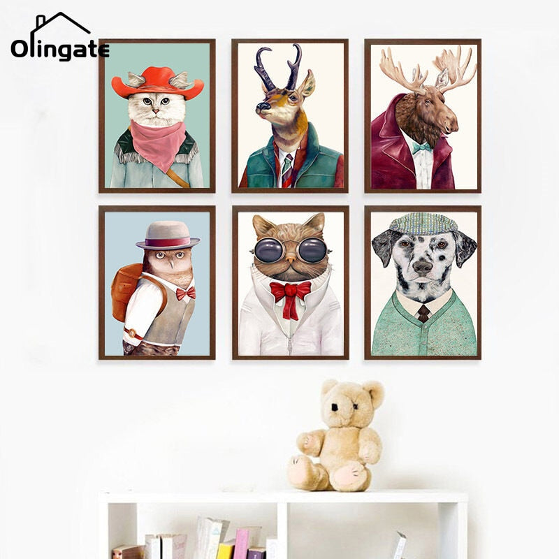 Funny Art Cute Cartoon Animals Canvas Painting Elegant Dog Fox Cat Poster Print One Piece Wall Art for Living Room Home Decor