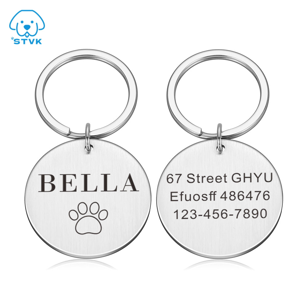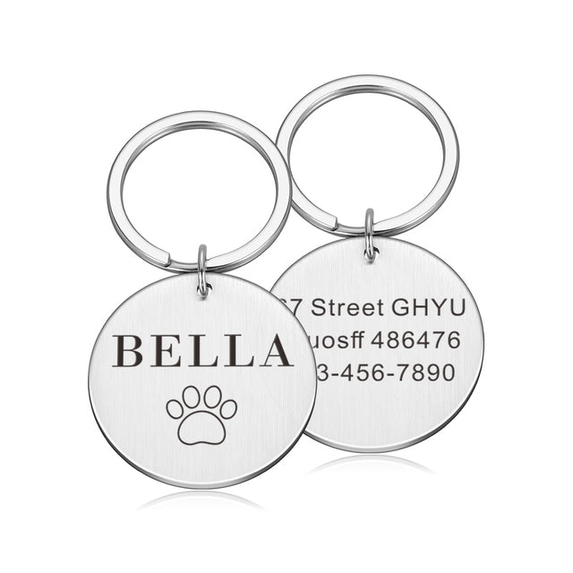 Introducing our Personalized Cat Dog ID Tag, a must-have accessory for pet owners. This double-sided round nameplate is engraved and customizable, ensuring your pet's identification is always clear and visible. Made from high-quality stainless steel, this tag is durable and suitable for all seasons.