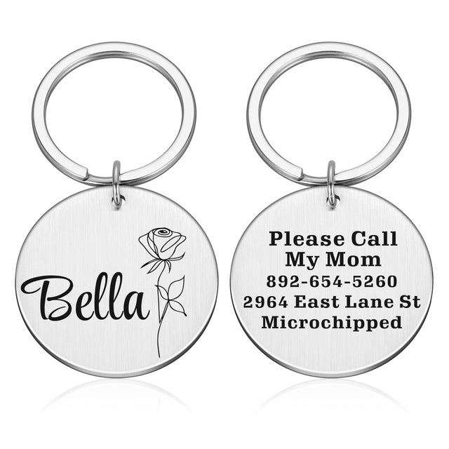 Introducing our Personalized Cat Dog ID Tag Flowers Artistic Font Double Sided Engraved For Small Medium Large Pet Dog Collar Accessories Tags! These ID tags are a must-have for any pet owner who wants to keep their furry friends safe and stylish.