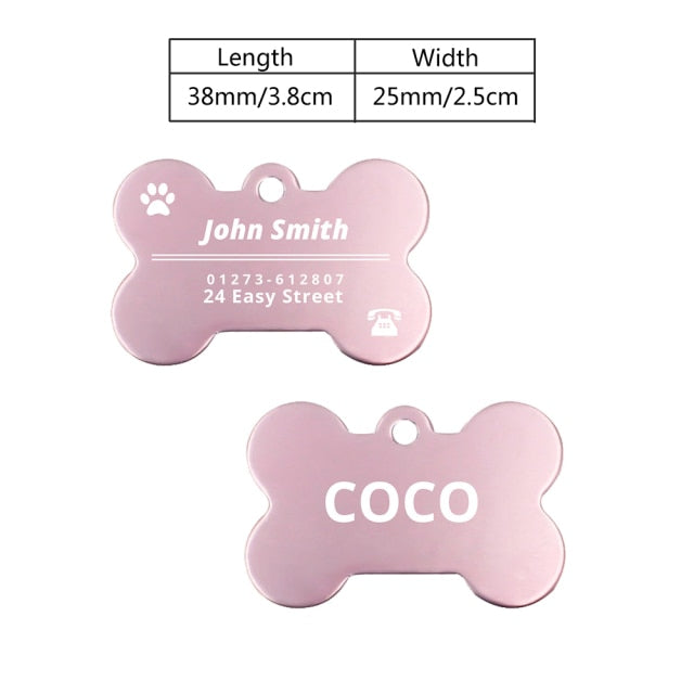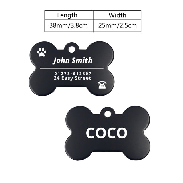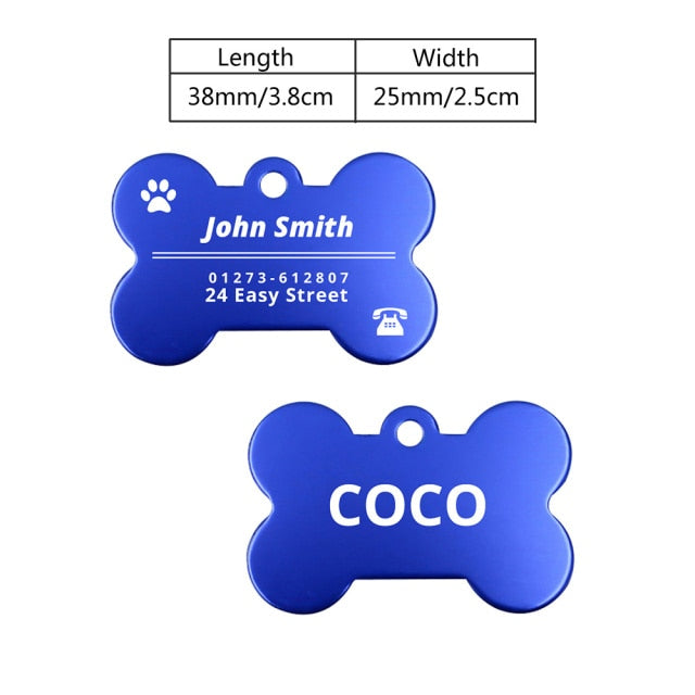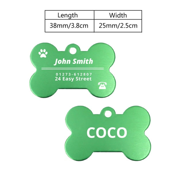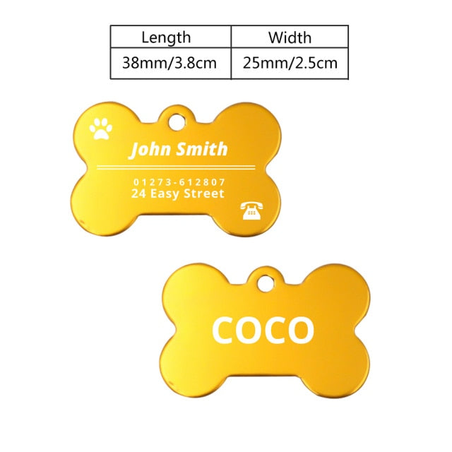 Our tags come in a bone shape and paw shape, adding a fun and playful element to your pet's collar. The bone shape is perfect for dogs, while the paw shape is suitable for both dogs and cats.