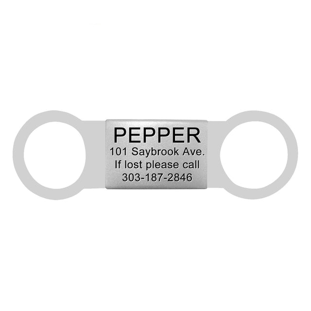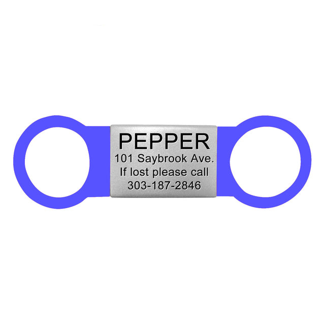 The Personalized Dog Tags Slide On Pet Tag ID Dog Cat ID Tag Silent Custom Dog Tags Engraved Dog Collars Cat Name Tag Customized is a stainless steel ID tag that can be customized with your pet's name, address, and phone number. The tag is silent, so it won't make any noise when your pet moves around, and it slides onto your pet's collar easily. The tag is also engraved, which means that the information on it won't fade or wear off over time.