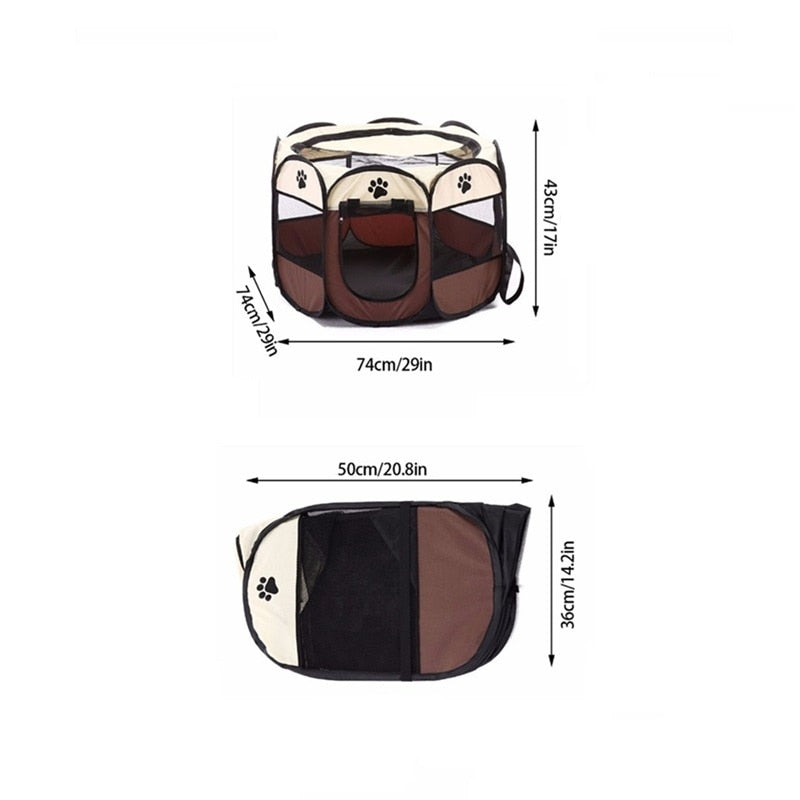 The Pet Playpen offers ultimate convenience with its removable pet house. Perfect for small and medium-sized dogs, this pet house provides a cozy and private space for your pet to relax and unwind. Need to travel or go on an adventure? No problem! This pet house is foldable and can be easily transformed into a pet tent, allowing you to take your furry friend wherever you go.
