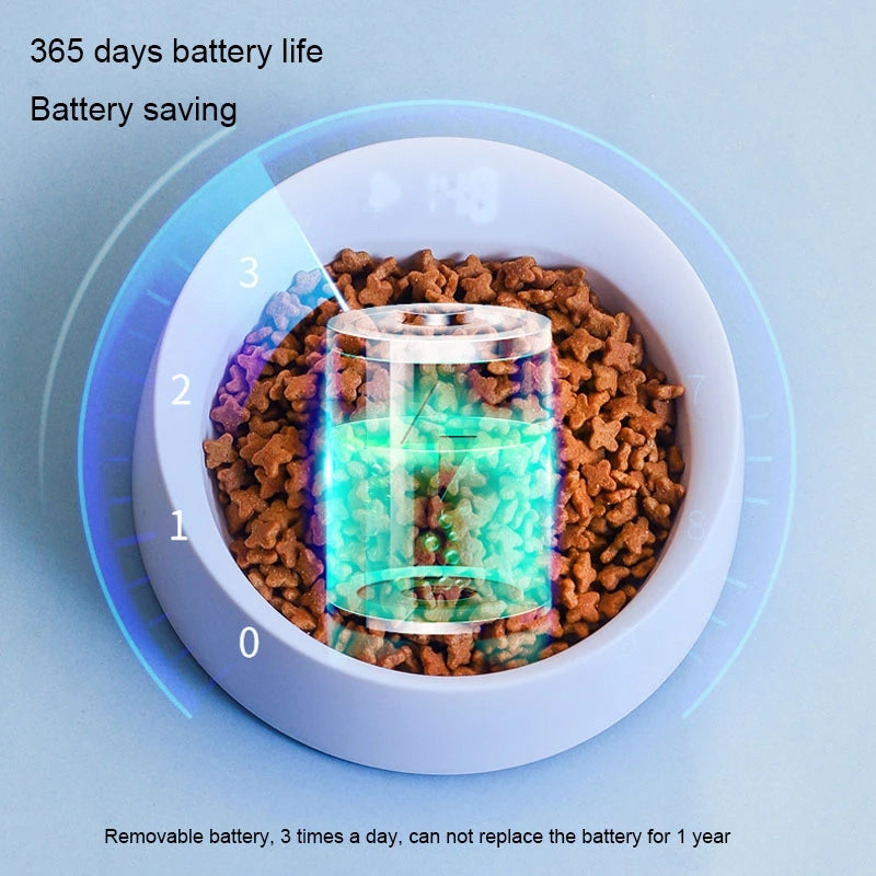 The bowl has a volume of 400ml, providing ample space for your pet's food. It is made of PVC, a durable and easy-to-clean material. The Pet Bowl Feeder requires ordinary AAA dry batteries, which are widely available.