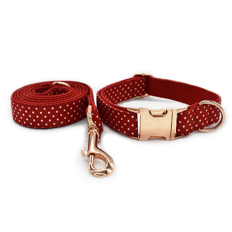 Invest in a personalized pet collar and leash set that reflects your pet's unique personality. Choose from a variety of colors, including white dot, red, and black, to suit your pet's style. These collars and leashes are not only functional but also fashionable, allowing your pet to make a statement wherever they go.