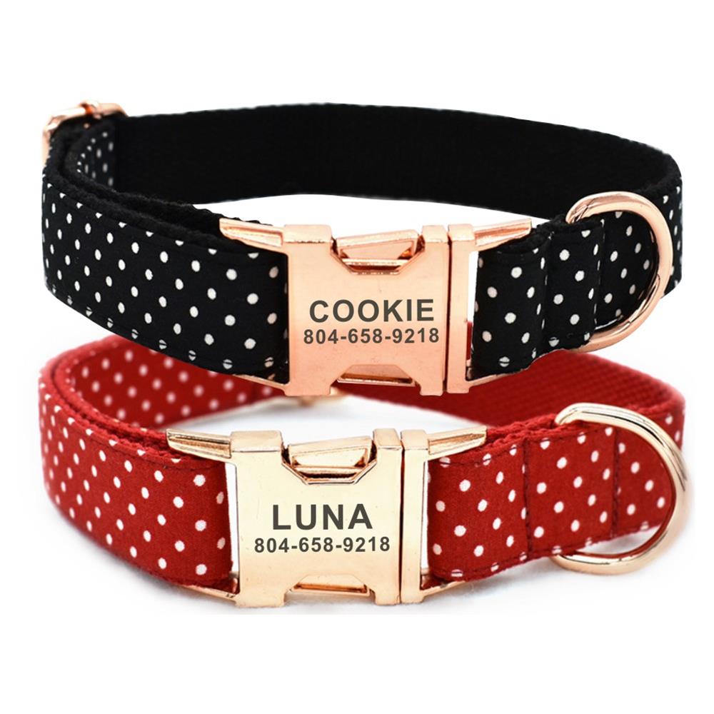 Personalized Pet Collar White Dot Puppy Cat ID Tag Adjustable Custom Name Rose Gold Buckle Red Black Basic Dog Collars Leash Set