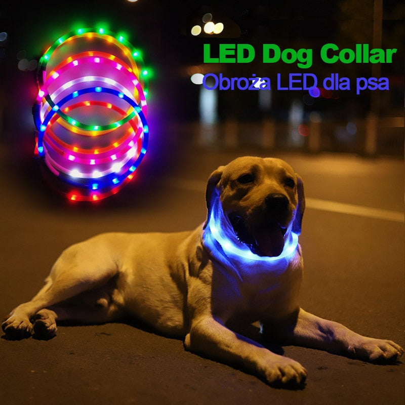 Pet Collar LED USB Rechargeable Adjustable Resizable Silicone Luminous Dog Collar For Pet Dog Cat Night Exercise Pet Accessories