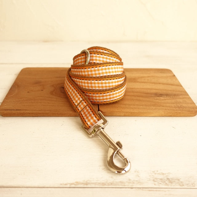 Personalized Pet Collar Scottish Plaid Custom Puppy Cat Name ID Tag Adjustable Collars Lead Leash Set Free Engraving Dog Collars