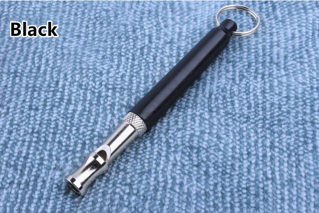 A dog whistle that can be used to train dogs. It is adjustable and produces a high frequency ultrasonic sound that can deter barking and encourage obedience. It is made of chrome-plated metal and comes in various colors. It is not a smart device.