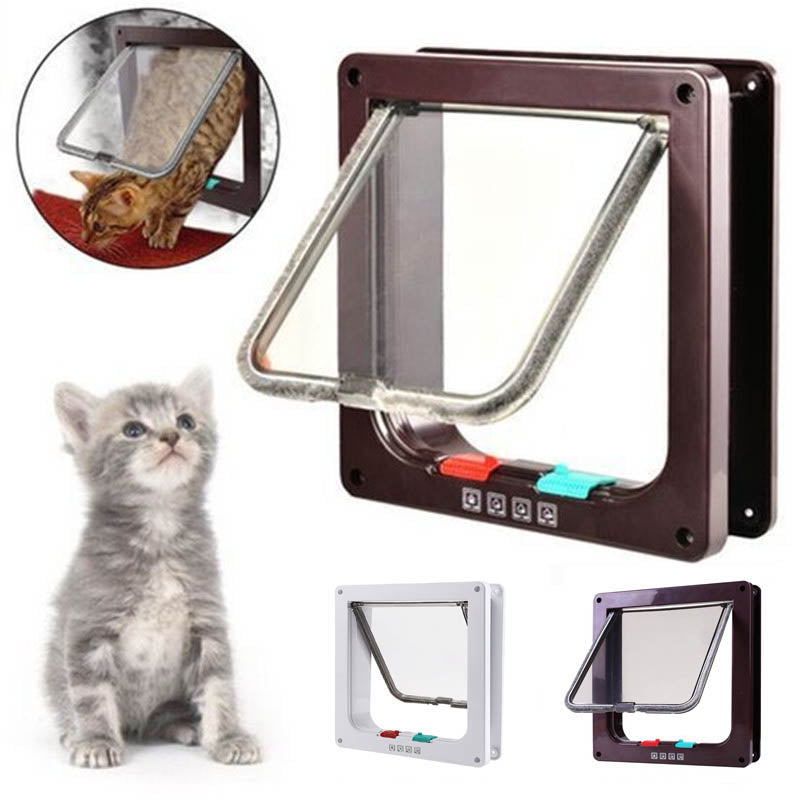 Pet Door 4 Way Lockable Dog Cat Kitten Door Security Flap Door ABS Plastic S/M/L Animal Small Pet Cat Dog Gate Door Pet Supplies