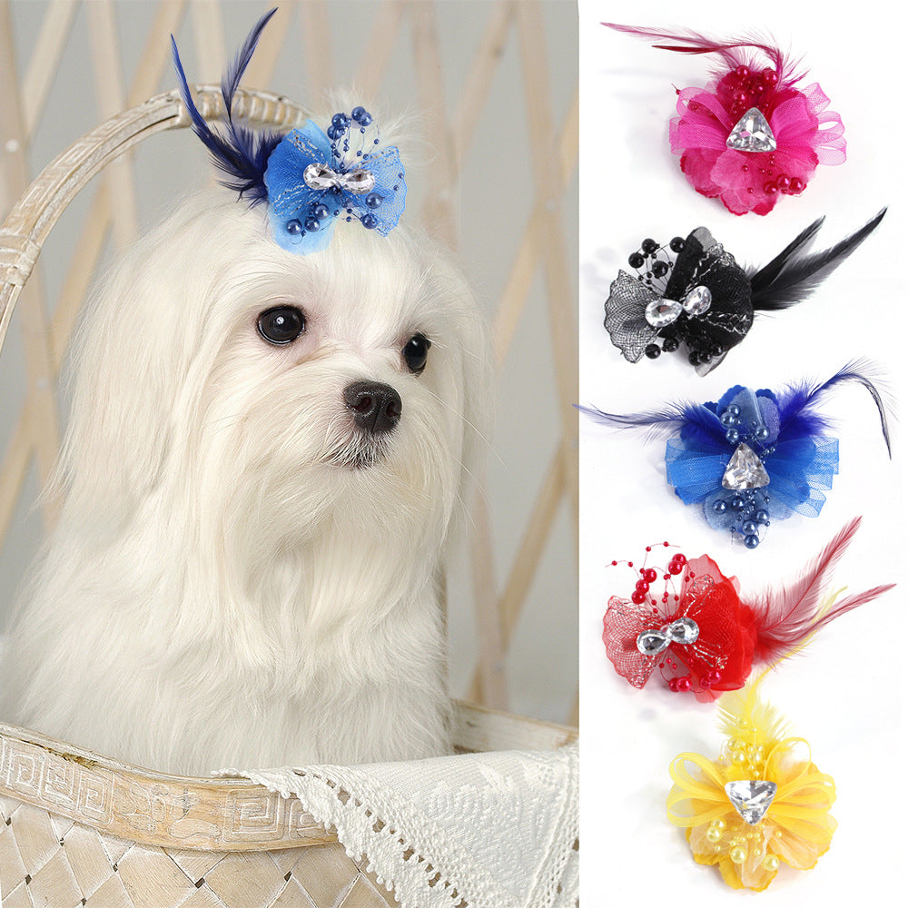Pet Dress Up Hairpin Princess Flower Bow Pearl Headdress Hairpin Cat and Dog Headdress Pet Supplies Puppy Accessories