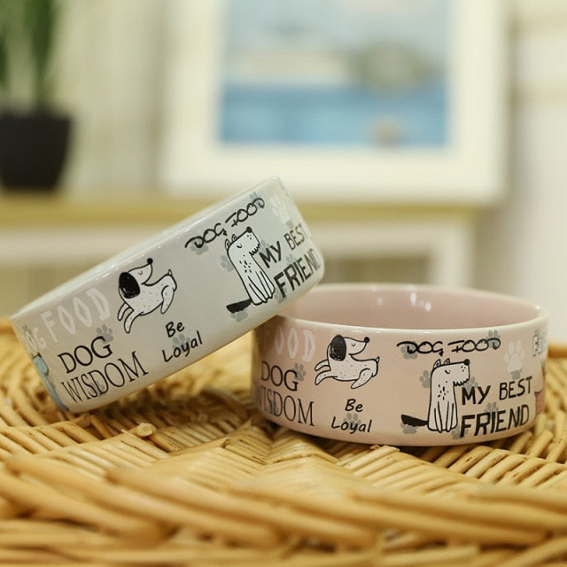 Introducing the Lovely Pet Feeders English Cartoon Pattern High Quality Thick Non-slip Ceramics Bowls for Dogs and Cats Pet Supplies Accessories! This premium ceramic pet feeder bowl is designed with adorable English cartoon patterns, making mealtime a delightful experience for your furry friends.
