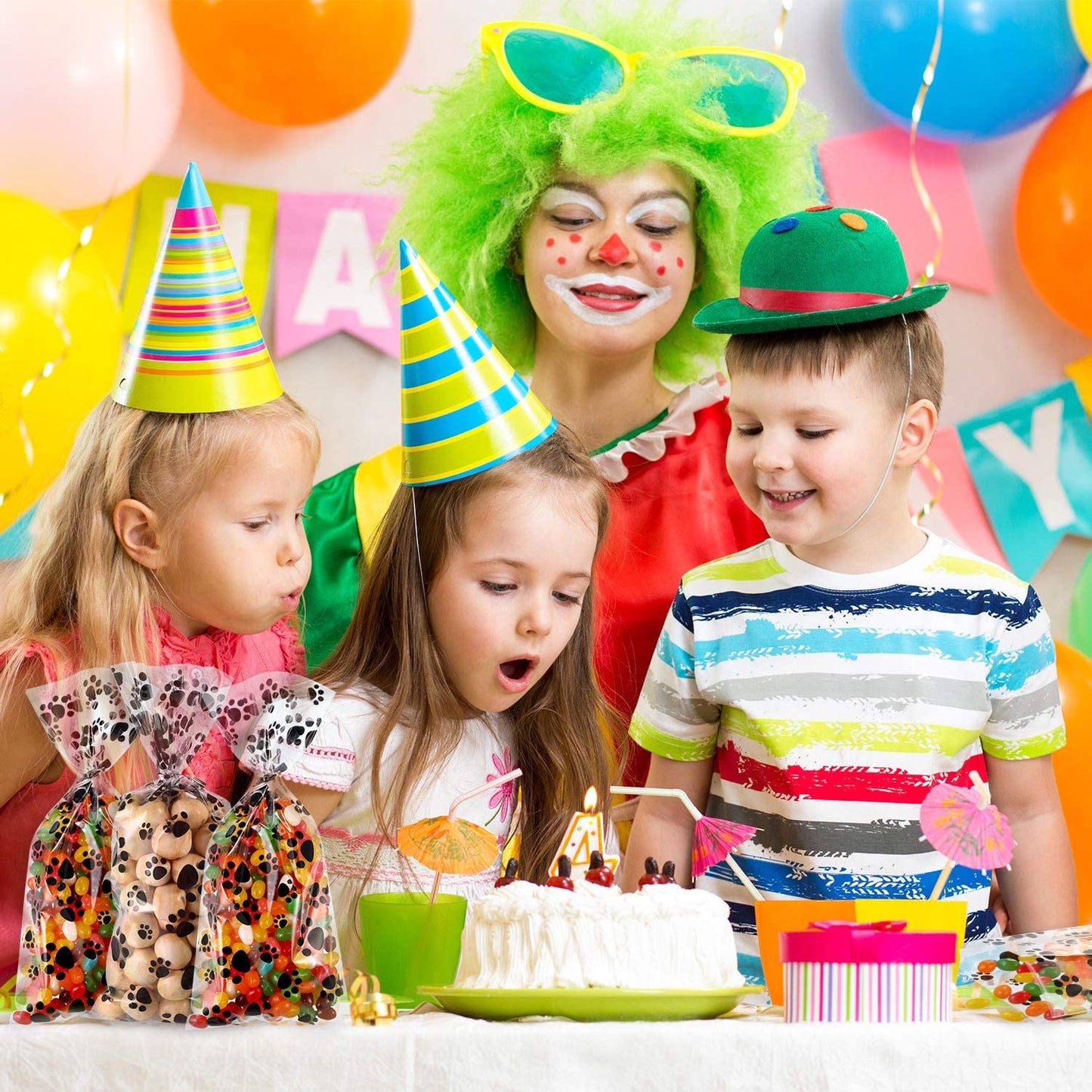 Pet Paw Print Cellophane Bags Heat Sealable Treat Candy Bags Dog Cat Gift Bags with 50pcs Twist Ties Birthday Party Supplies Kid